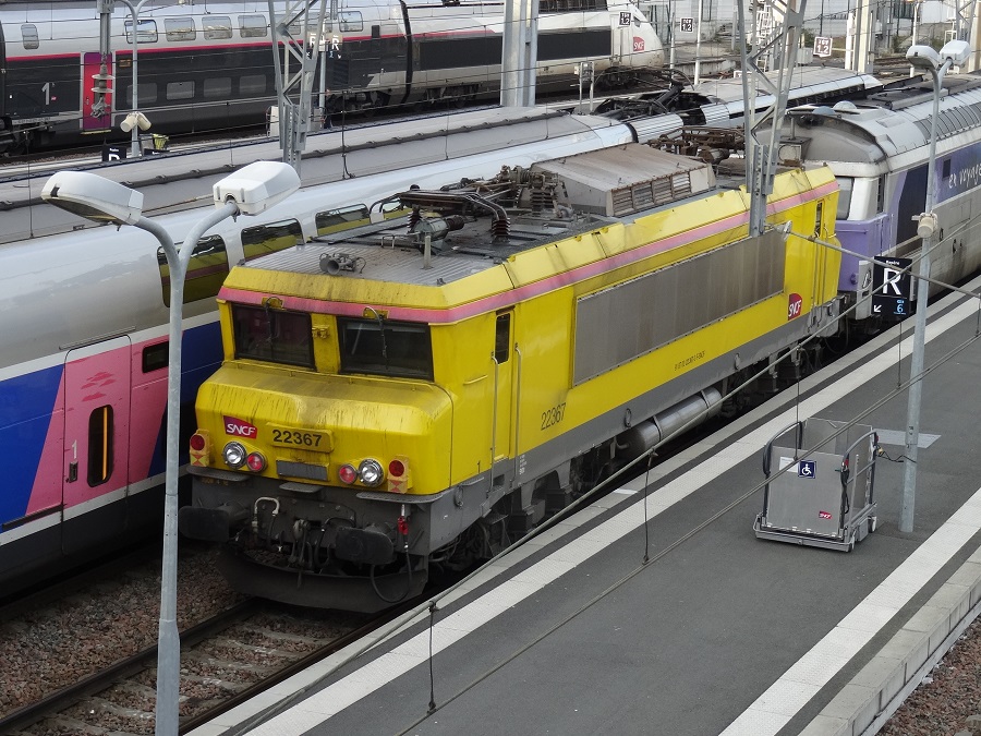 Voici la machine qui arrive du Sud-ouest à 15h25 avec une belle rame Infra sur la zone de garage des rames Infra/SNCF Ã