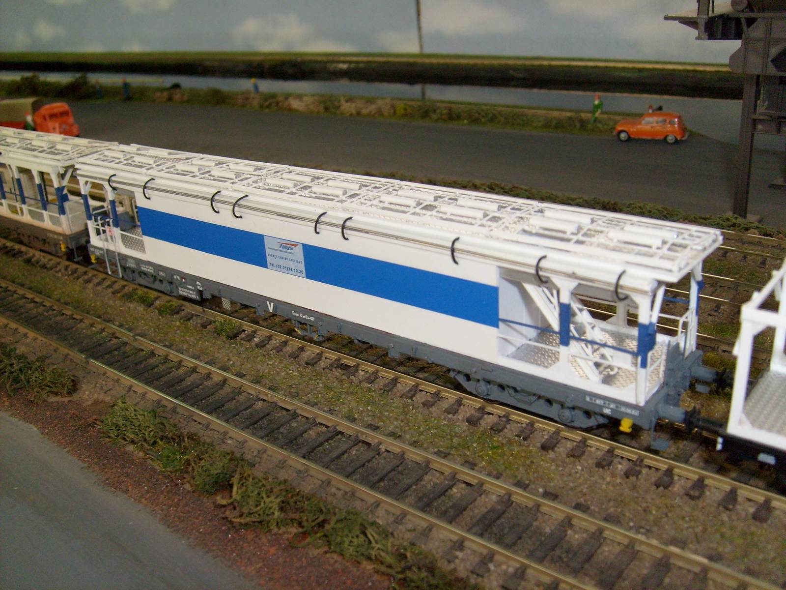Voici les photos du troisième wagon plateforme. Comme à son habitude, Christian a rendu la perche de mise à la terre fonctionnelle ... mécaniquement !