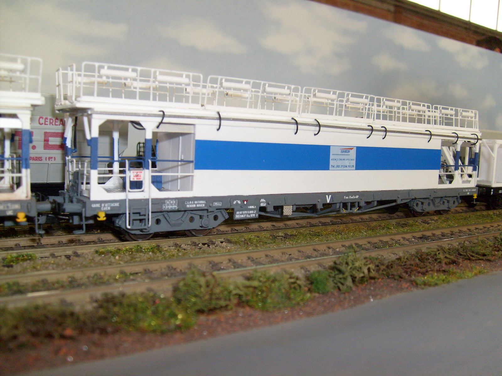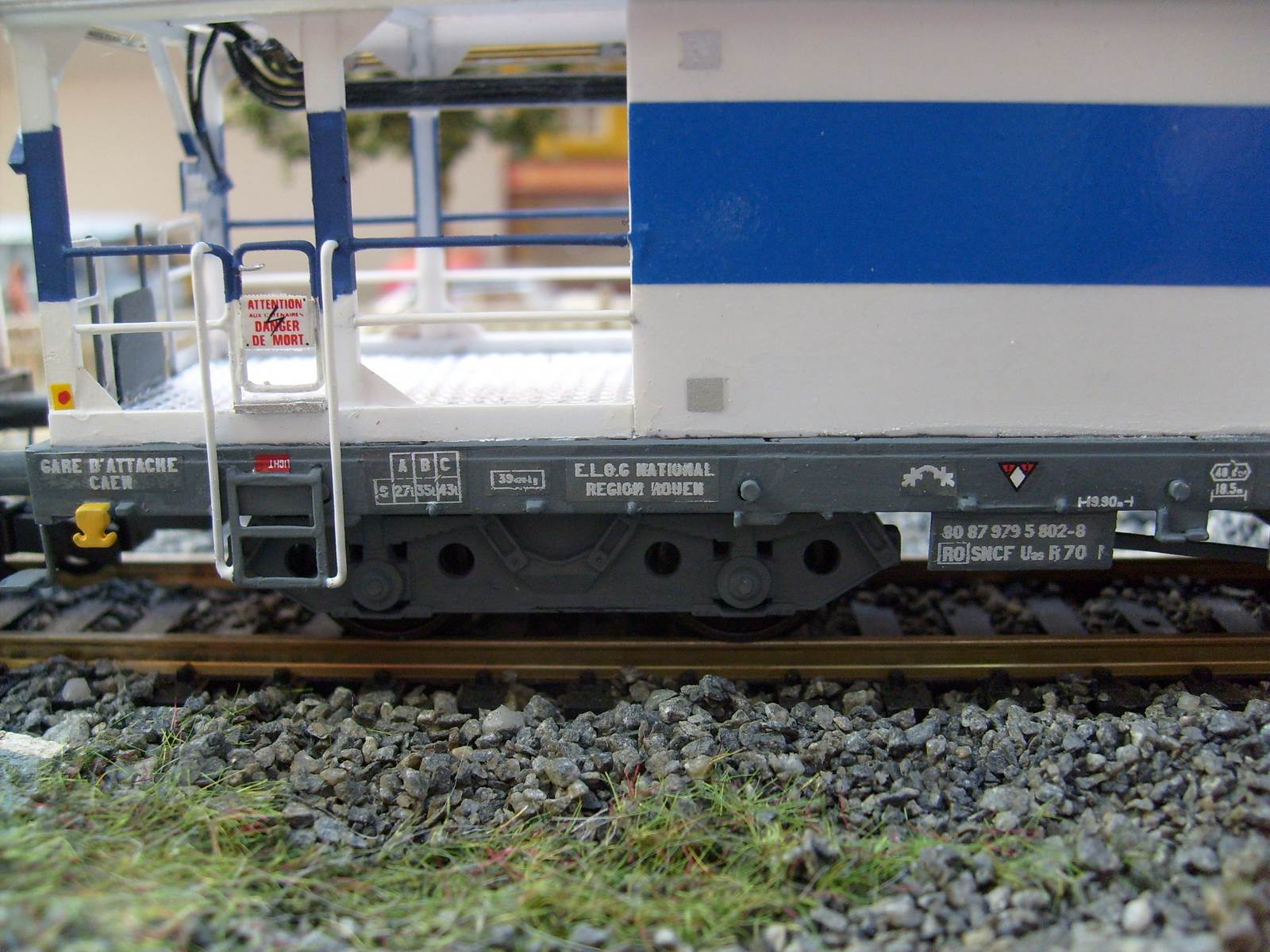 Il manquait à la rame sa voiture de cantonnement,c'est maintenant chose faite, sur une base de voiture Ocem à faces lisses B5D Jouef