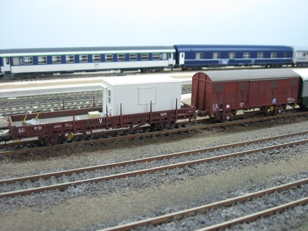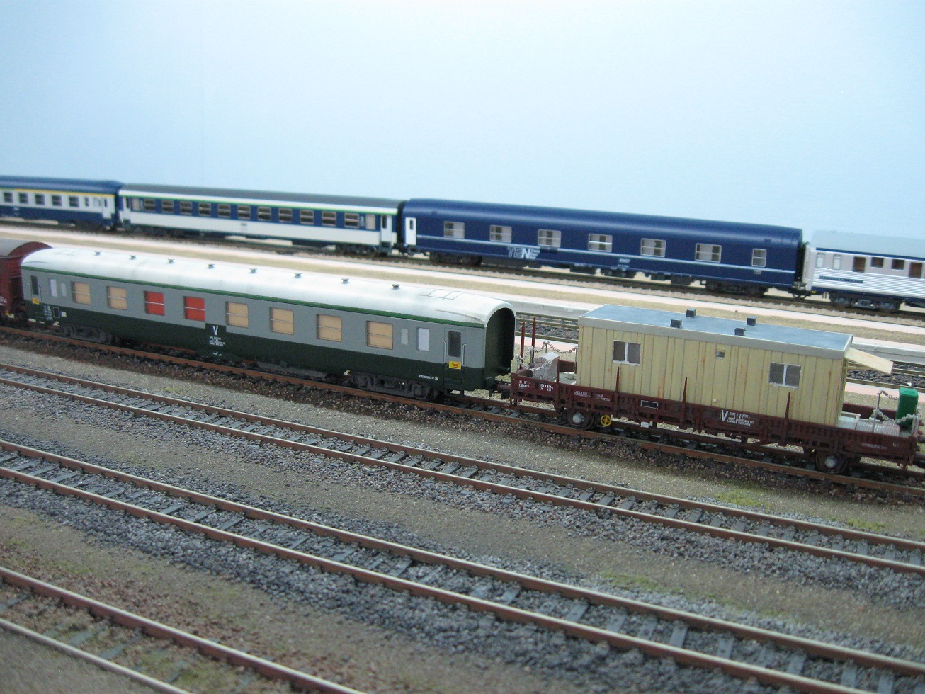 Reproduction au plus près de cette rame, d'après des photos du forum. J'ai pu voir ces wagons, et d'autres, la composant, en gare de AIXE SUR VIENNE, lors d'un déplacement récent sur cette région