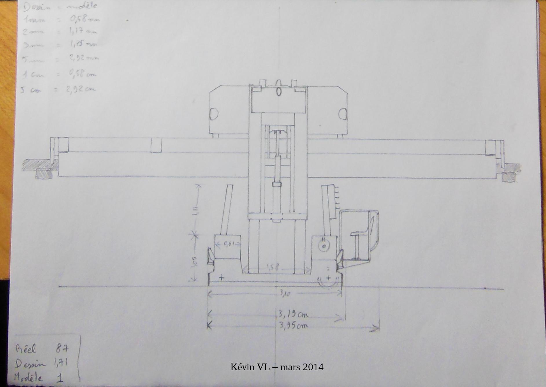 1 : copie sur papier des plans de la brochure officielle (3 petits schémas) à l'aide d'une règle sur l'écran. Malgré le peu de dimensions données, j'ai pu en conclure l'échelle de mes plans papier, tout en vérifiant sur les photos récupérées.