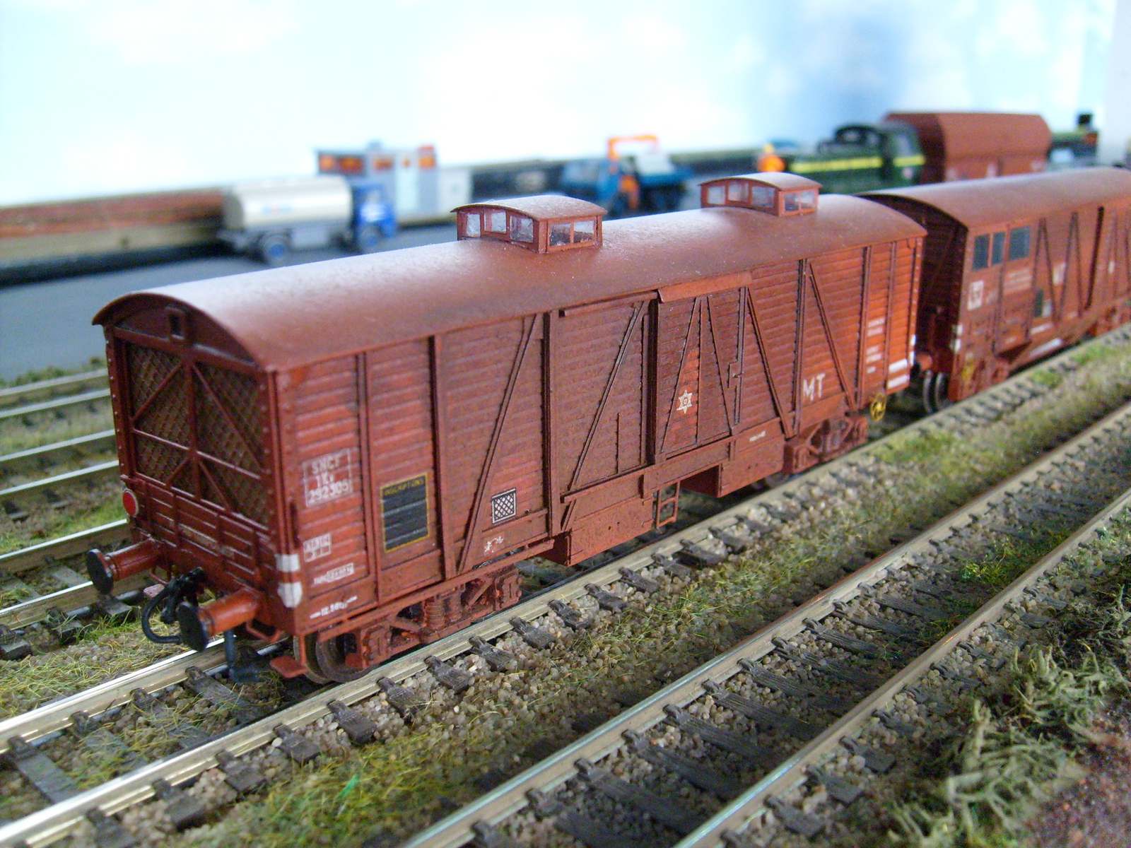 Son wagon porte flêche sur base Osckar et le wagon porte agrés sur base Jouef