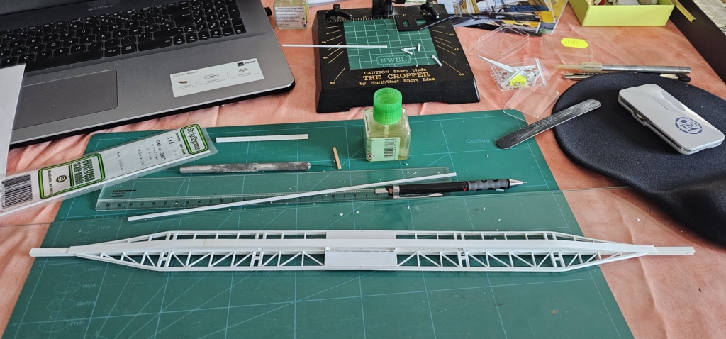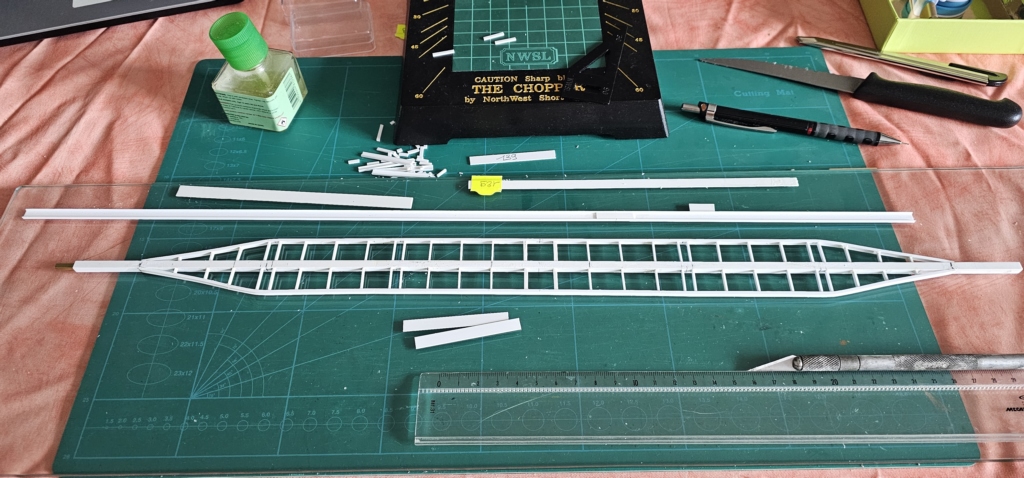 Voici l'avancée du jour, un coté de la structure de base... et l'arête dorsale de la poutre