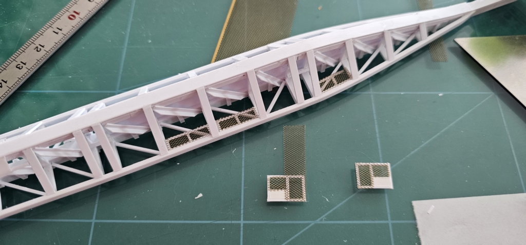 L'avancement de ces derniers jours à permis de finir le renforcement de la poutre centrale, et les marchepieds grillagés sont en cours de réalisation et de pose