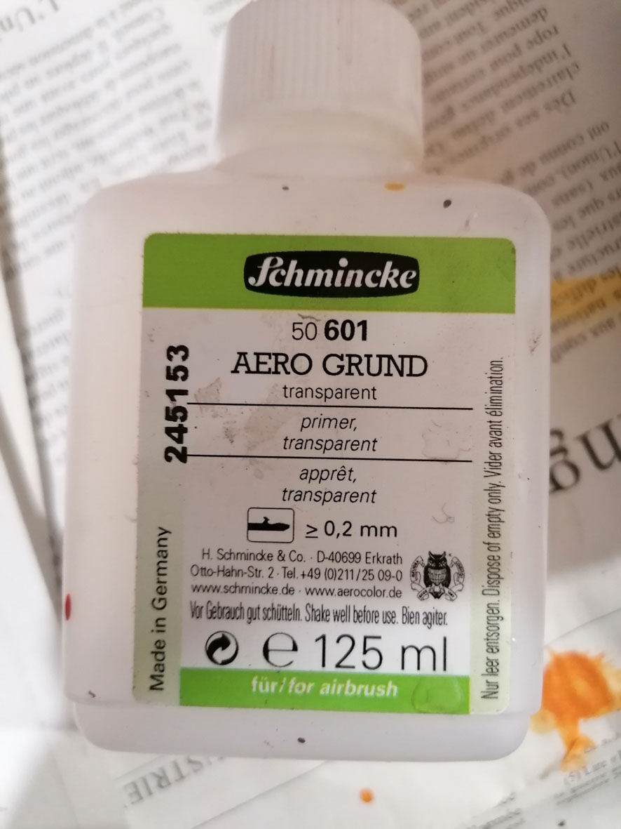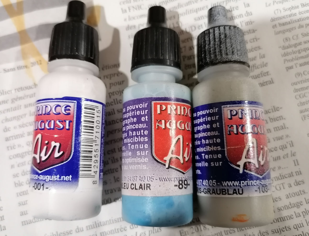 Pour toutes mes patines j'utilise la gamme Pince August et des bombes pour faire le blanc et le jaune. Pour l'orange une base orange + jaune avec du gris ou du cyan pour désaturer la couleur. Je fais les mélange à l'oeil.