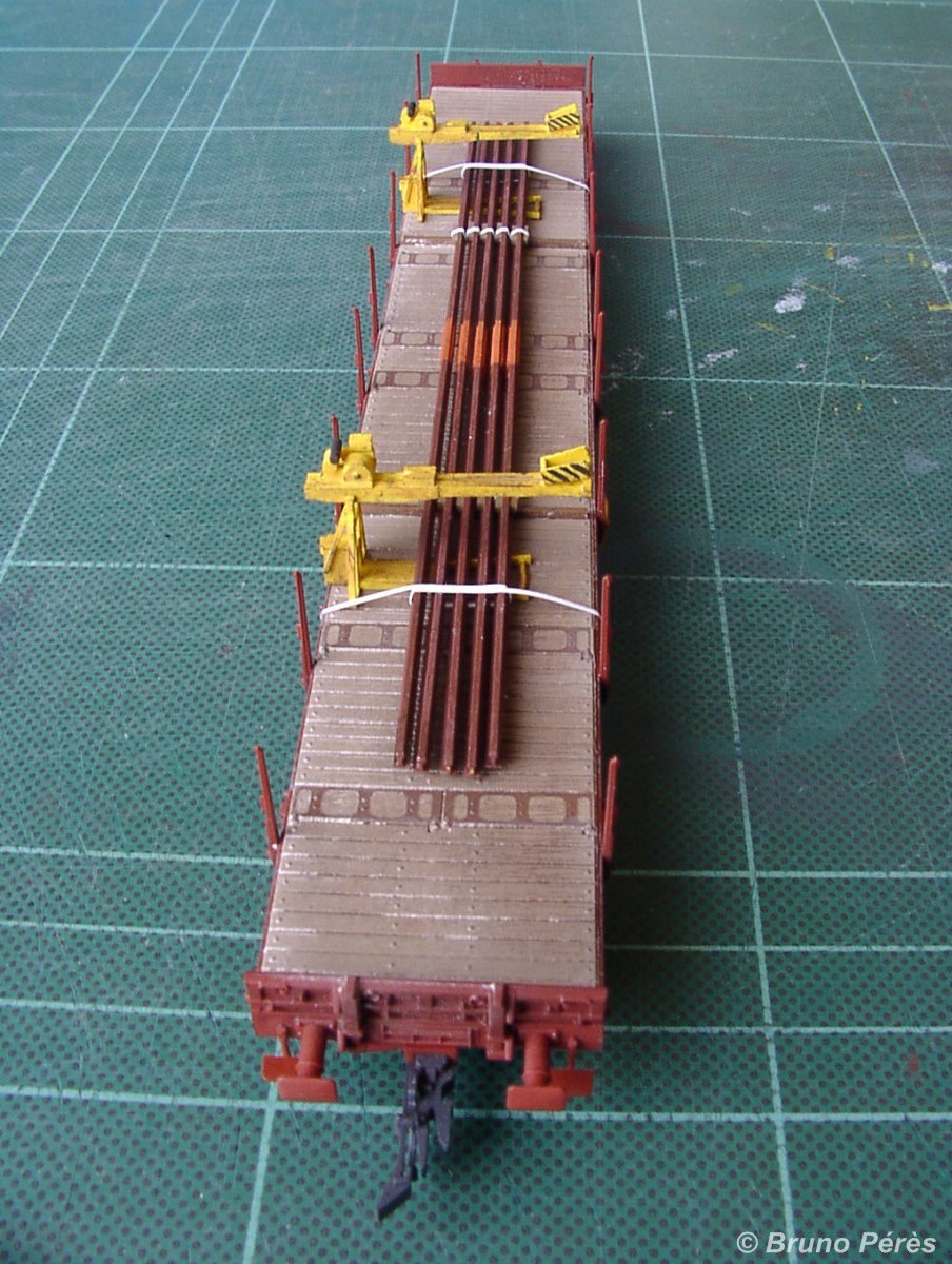 On peut coller à la vynilique ou la Microscale les portiques sur les wagons et c'est réversible.