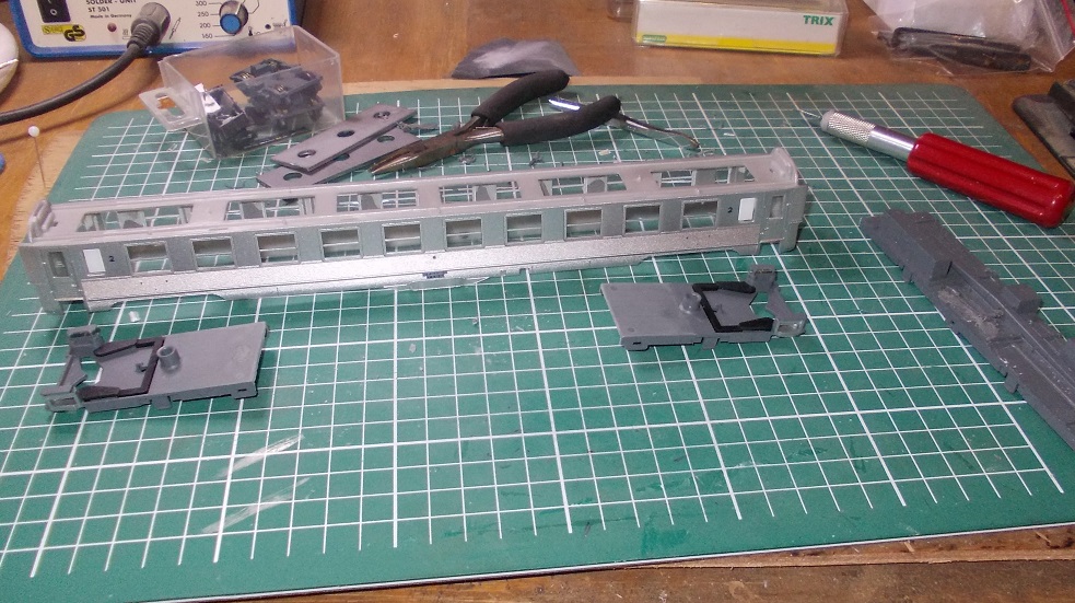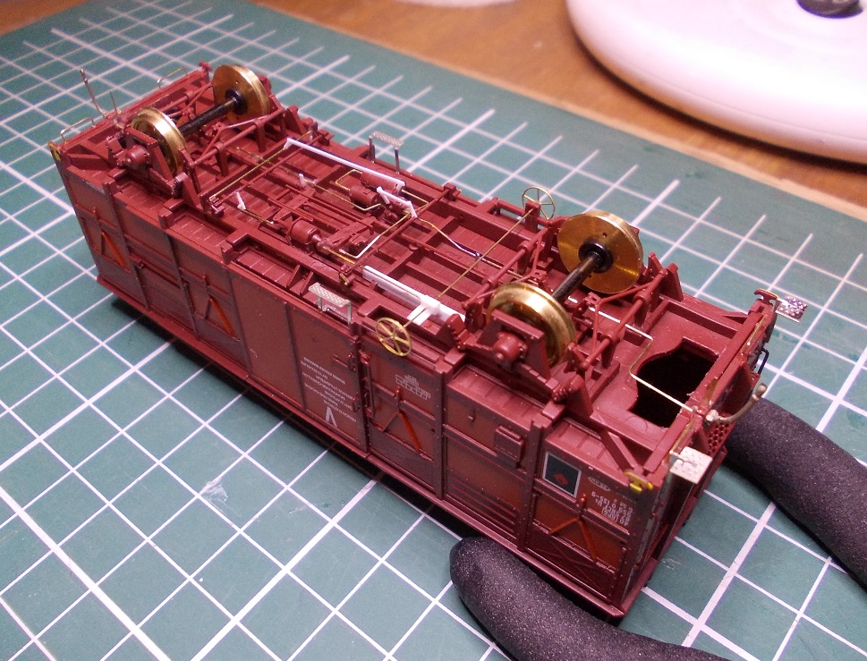 Même entre axe de bogies à 2mm près, même longueur de châssis, idem tampons compris... Bien entendu il y aura des modifs à faire mais elle arrivera à point... Mais quel est donc ce modèle??? Tout simplement la citerne courte ANF REE dont le nombre de pièces rapportées va permettre de reproduire cette fameuse citerne d'accompagnement sans rentrer dans de gros charcutage!!!