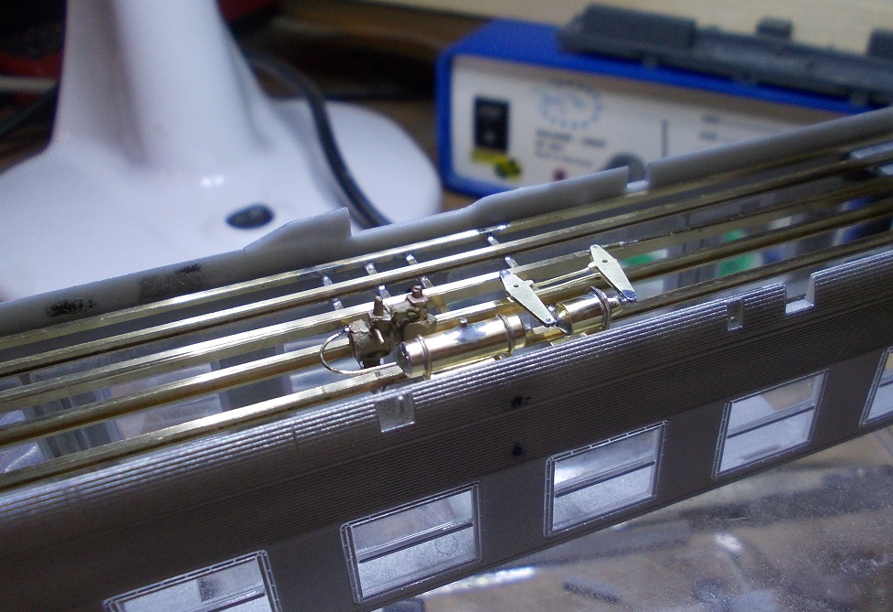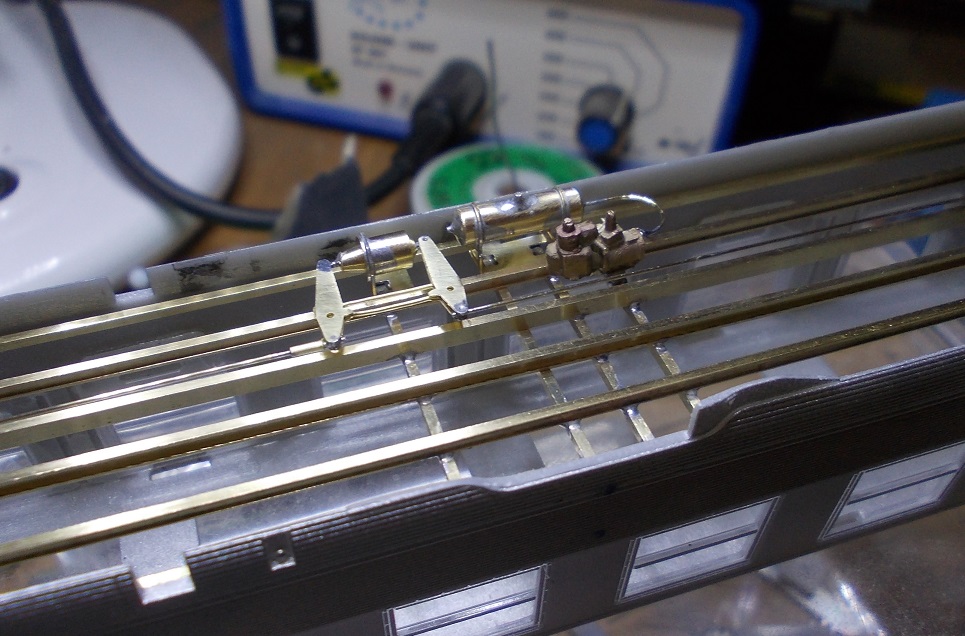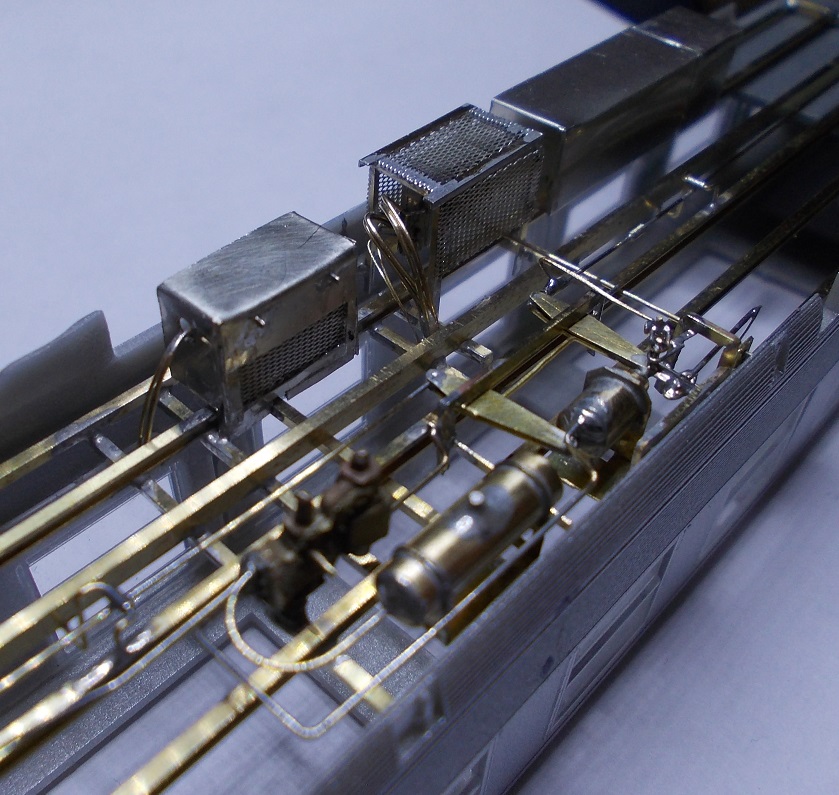 Les versions produites par Rivarossi ou HJ maintenant ont un châssis ou tout est moulé dans la masse donc d'un aspect assez "mastodonte" de plus ceux ci évoquent des châssis de voiture en service commercial et celui que je reproduits comporte des équipements totalement différents, disposition des différents coffres, tuyauteries, coffre de clim, etc... Les seules choses d'origine qui ne paraîssent pas avoir bougé sont les appareillages de freinage, ce que je reproduits en premier!!!