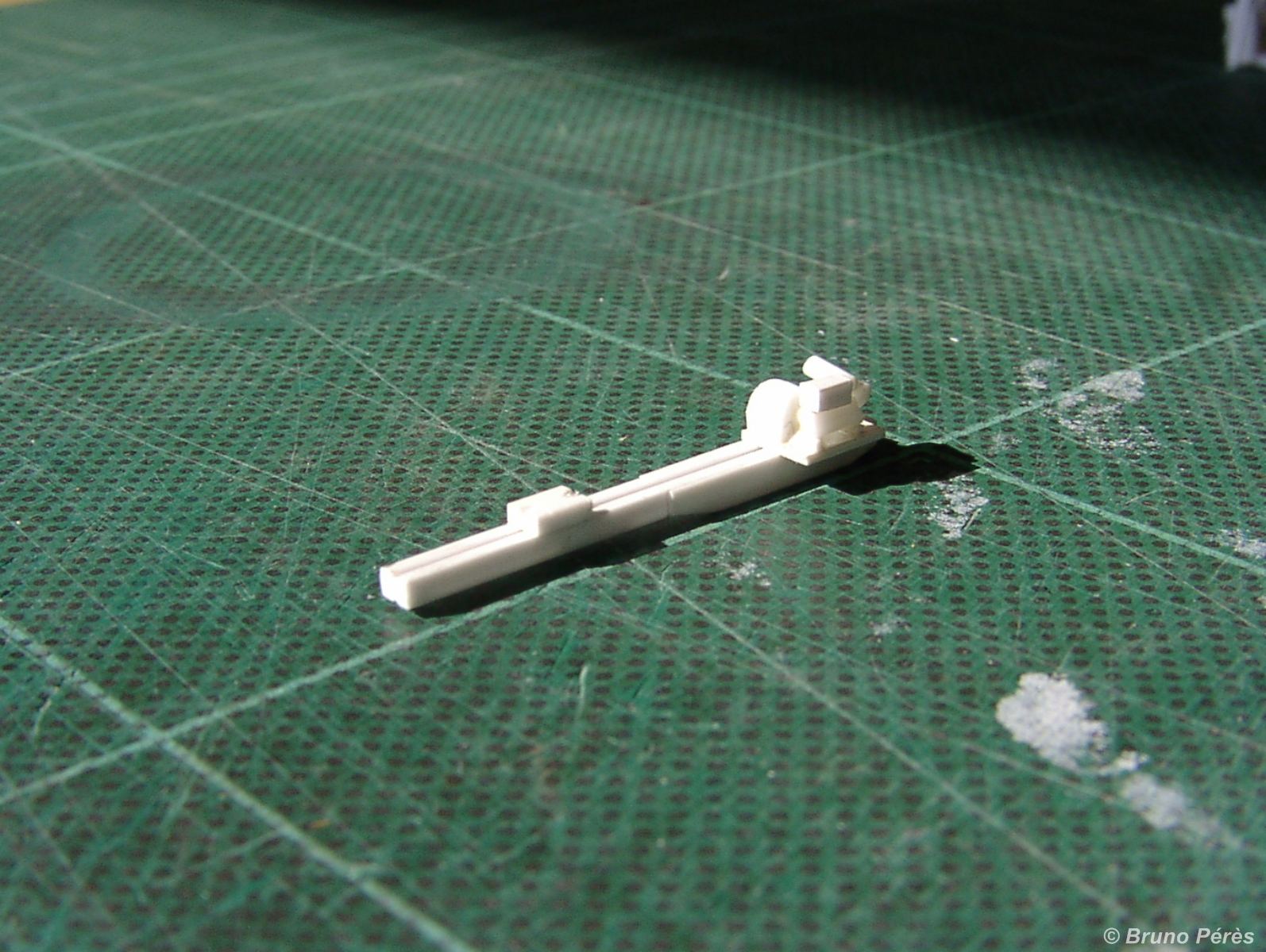 Je suis amateur et défenseur du moulage, bien que je ne l'ai utilisé que peu. La différence entre un pro et un amateur non équipé fait qu'un moulage est bon ou moins bon, voire mauvais. Et je ne me sens pas capable de mouler correctement ces petites pièces. Je me résous donc à construire ces portiques en plasticarte ... mais une fois le prototype terminé, je les ferai en série avec découpe des pièces avec le Chopper II de NWSL ;)