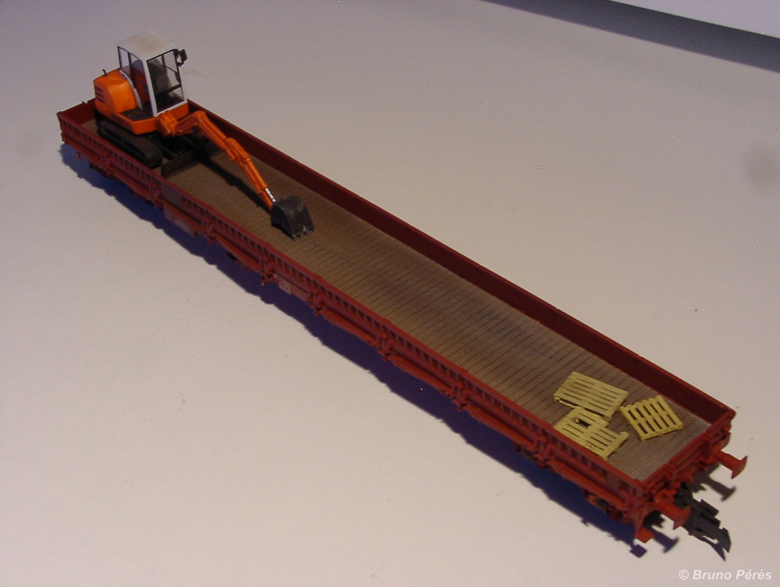 Voici quelques photos et explications sur la réalisation d'un R80 Fleischmann chargé d'une pelleteuse.