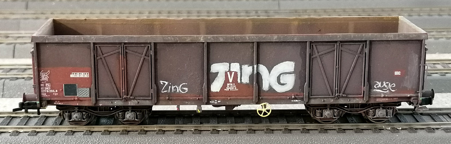 Patine d'un tombereau F28 pour le ballast fait à partir d'un modèle klein modelbahn