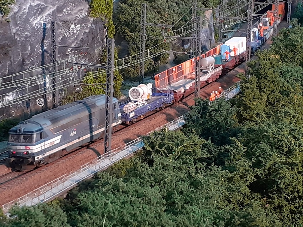 La composition du train n'étais pas complète il me manque encore 3 ou 4 wagons avec d 'autre engins dessus ,il sera terminé officiellement pour Savoie Modélisme en 2023 voilà maintenant place aux photos