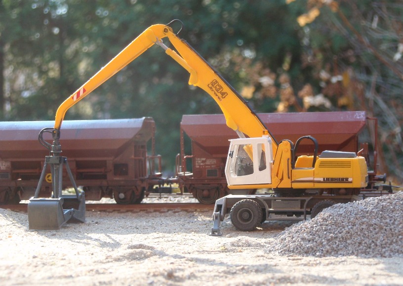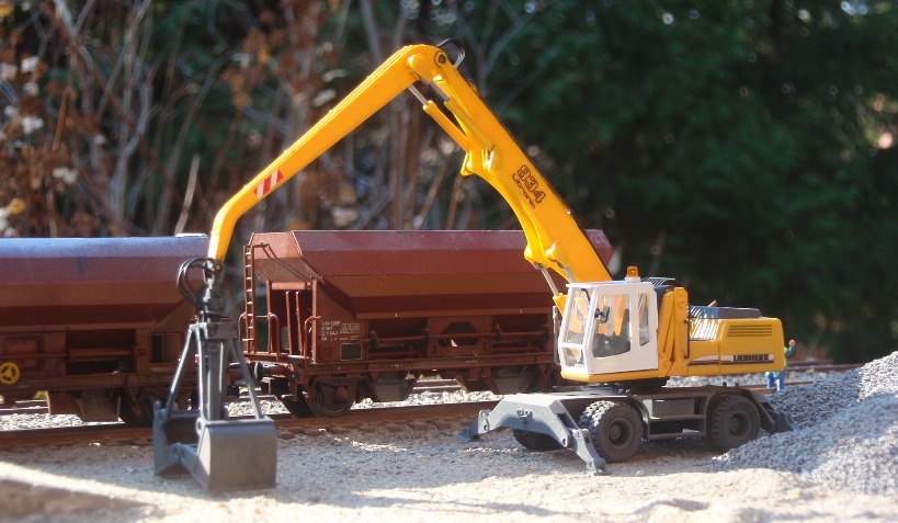 La 934 est une Kibri modifiée pour refléter la machine équipée du système de cabine télescopique (ici non-fonctionnel) et non celui avec la cabine réhaussée (option choisie par Kibri...)
