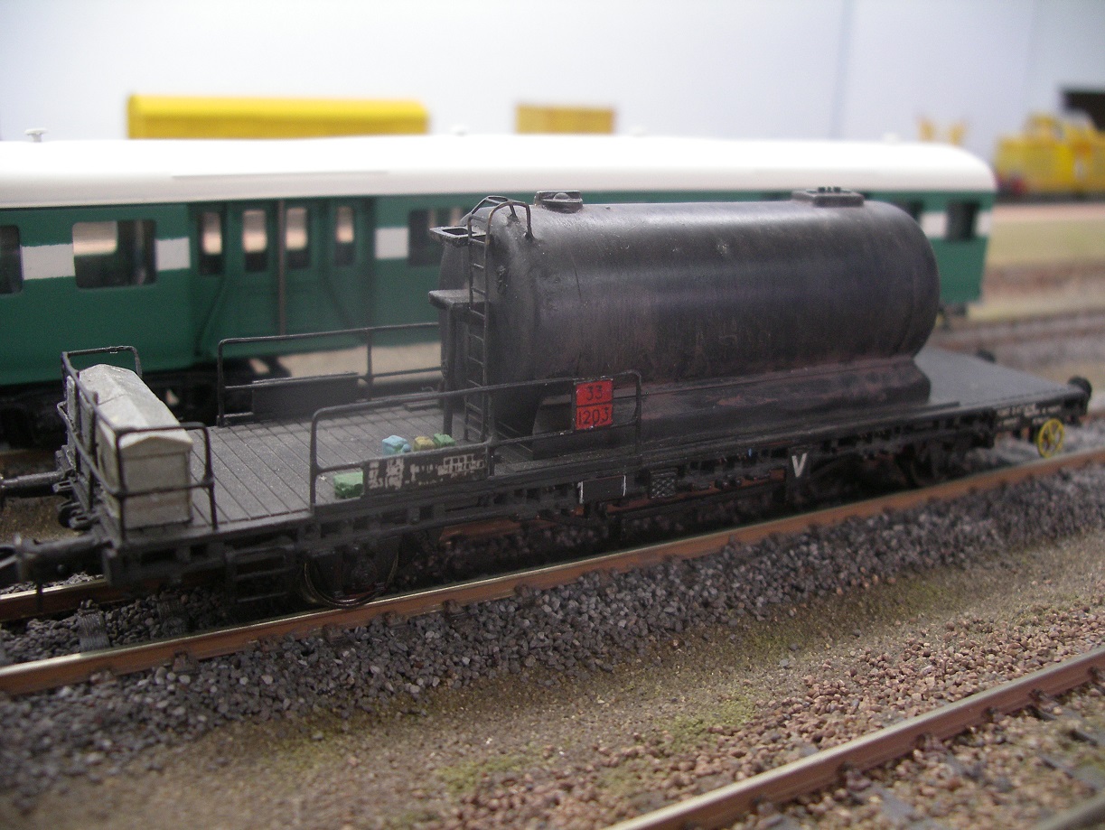 J'ai récupéré quelques photos argentiques, support à la réalisation partielle de cette rame, dont le but était l'intégration du wagon de transport de produits pétroliers, ayant pour point d'attache LE BOURGET (GELEV ?), dont la réalisation a fait l'objet d'un article dans R.M.F. 504 de juillet 2007.