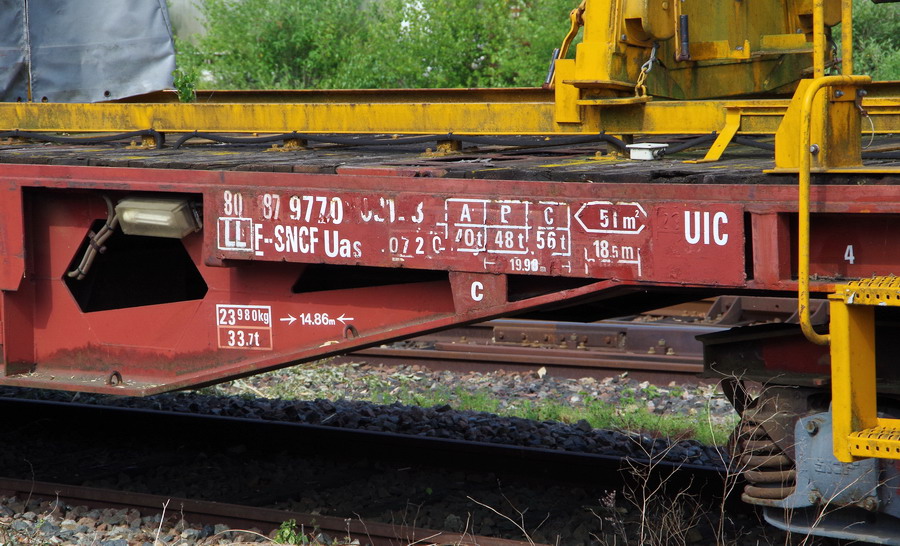 Le wagon plat 80 87 977 0 021-3 Uas R07 2 F SNCF-LL Point d'attache ARRAS