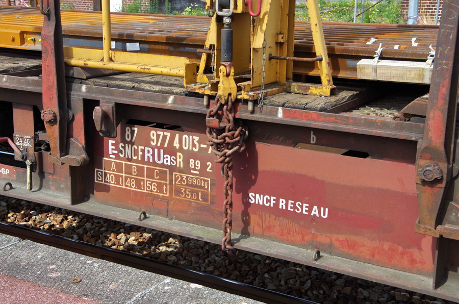Wagon 99 87 977 4 013-7 Uas R89 2 F-SNCFR - SNCF RESEAU avec portique incorporé dans une rame de TTx pour le RVB Amiens Serqueux