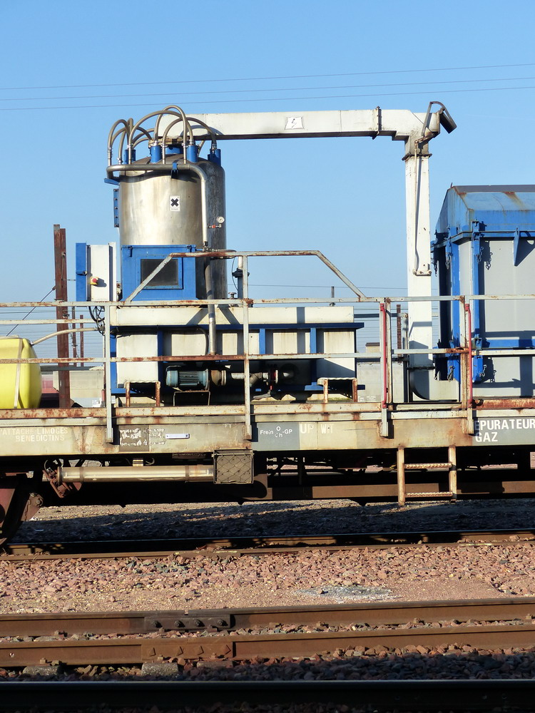 Voici le wagon 40 87 959 8 000-7 Us V86 1 SNCF-LM - Epurateur de gaz sur une rame qui arrive de l'ouest à 15h30