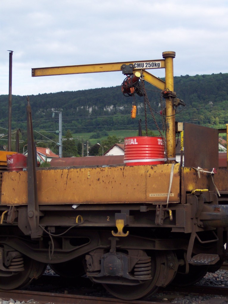 - Wagon plat - 99 87 9 383 671-4 - Colas Rail F7000006 sur le RVB ligne 15 à Soulosse le 7 août 2017.