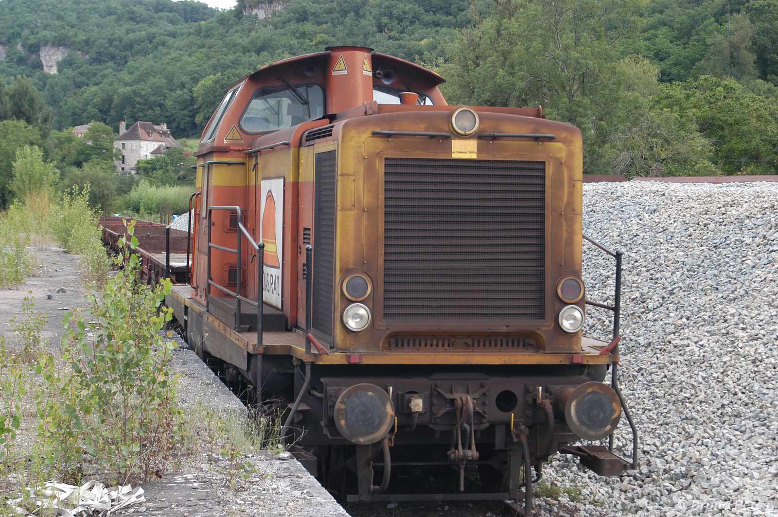 Nature du chantier: réfection des quais (ne concerne pas notre loc) et RVB - de la seule voie 2 ("tant pis pour la voie 1 et ses traverses pourries", dixit un agent sur zone). Ce RVB entraîne un réhaussement de la voie 2, et donc pas de la voie 1, ce qui crée une situation inconfortable au PN en sortie de gare... - inconfortable, mais provisoire, car il va être procédé à un rehaussement de la voie 1 juste pour la traversée du PN ! On peut penser qu'il s'agit d'économies à court terme, mais on n'est pas décideur...