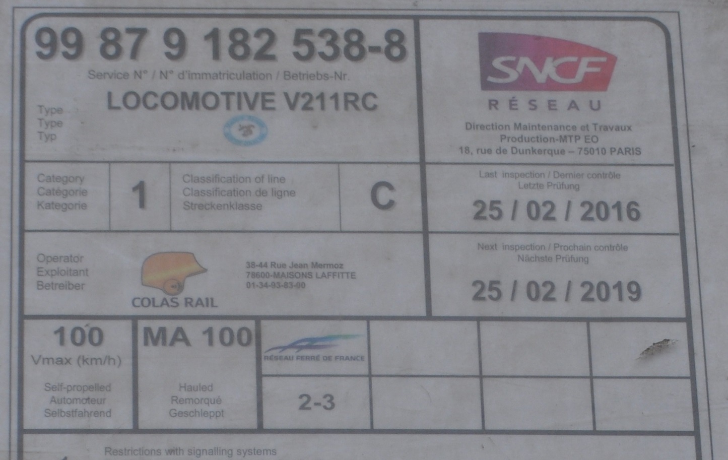 99 87 9 182 538-8 V211 RC Colas Rail F 60000 13
