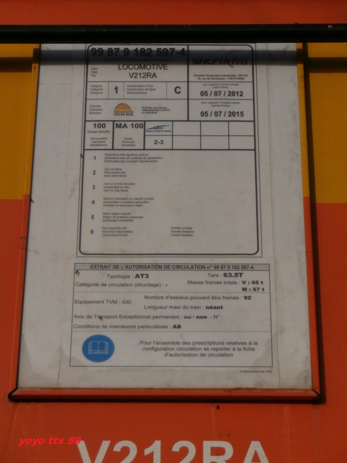 Il ce trouve ce jour a Lille Délivrance sur une rame d'assainissement .Il a maintenant comme dénomination " V 212 RA " .Cette après midi , séance photos pour le deuxième coté ( soleil oblige ) .