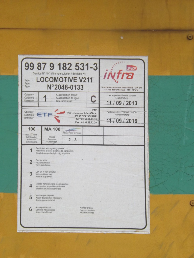 Il n'aura échappé à personne que le n° ETF "V211 n° 2048-0133" provient du fait que, de 1992 à 2002, cette loc - initialement DB V 100 1327 - fut propriété des ÖBB sous le n° 2048 013-3.