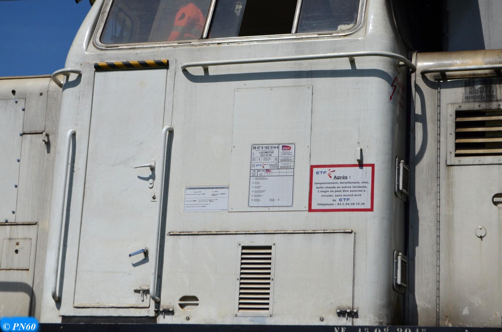 Vues rapprochées de la V.211 99 87 9 182 514-9 d'ETF prises le 22 mai 2017 sur la ligne 15 à Brainville sur Meuse.