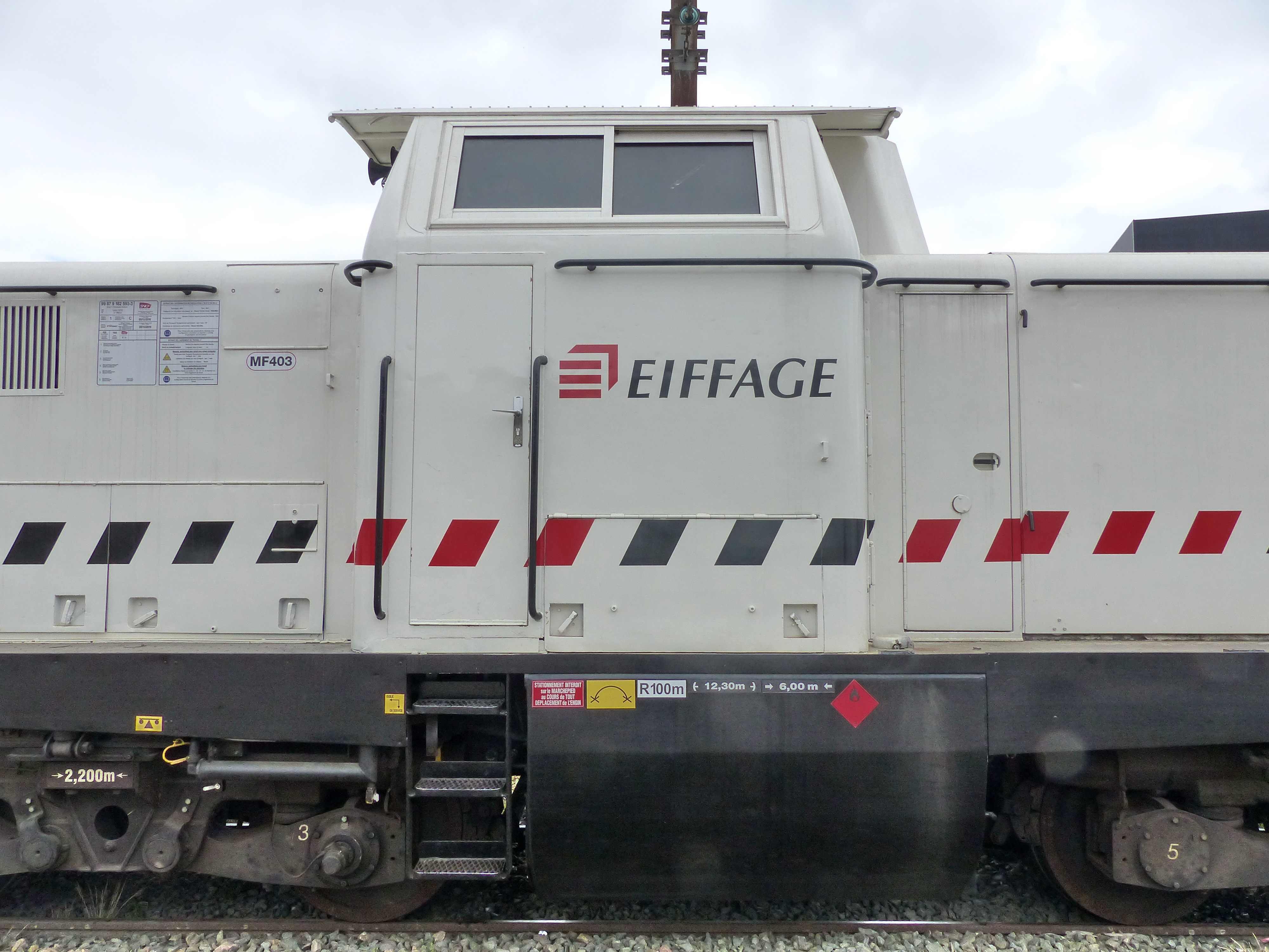 avec logo EIFFAGE sur la cabine et un n° de parc MF 403