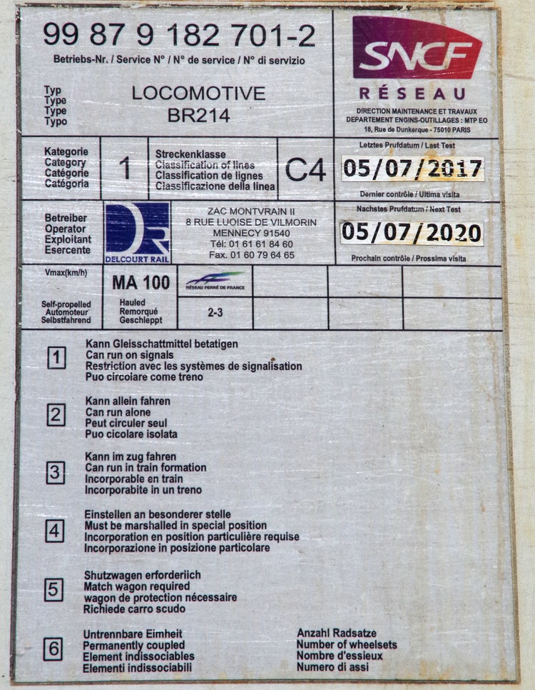 - 12-04-2011 jusqu'à Delcourt Ferroviaire DFC Sarl, Barbizon [F] "99 87 9 182 701-2"