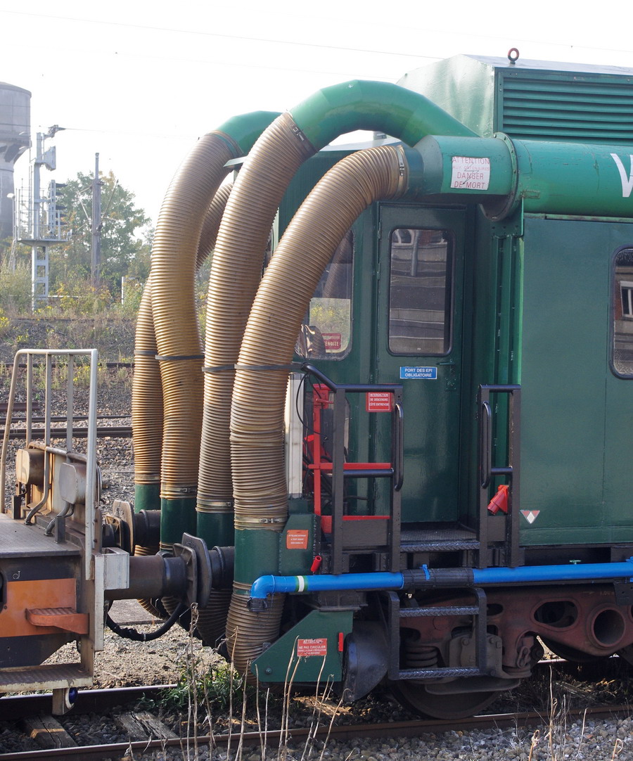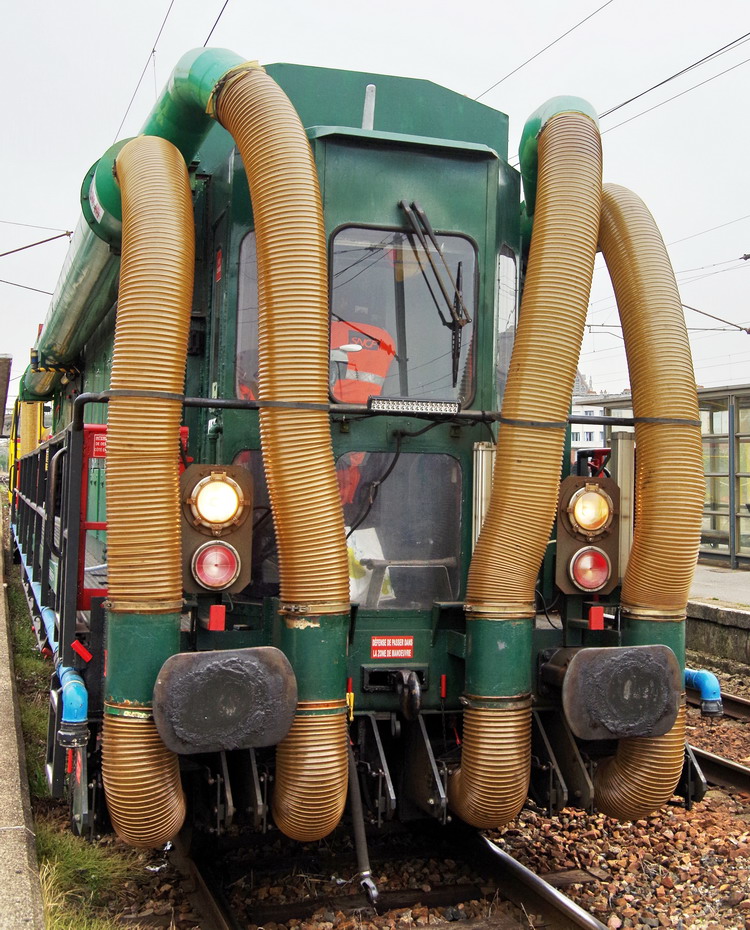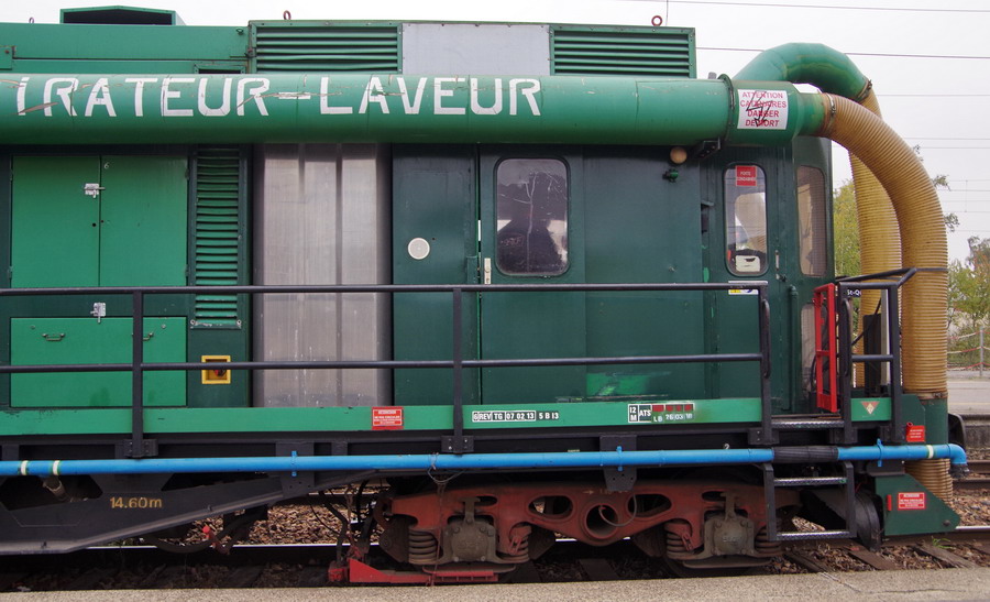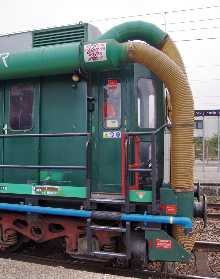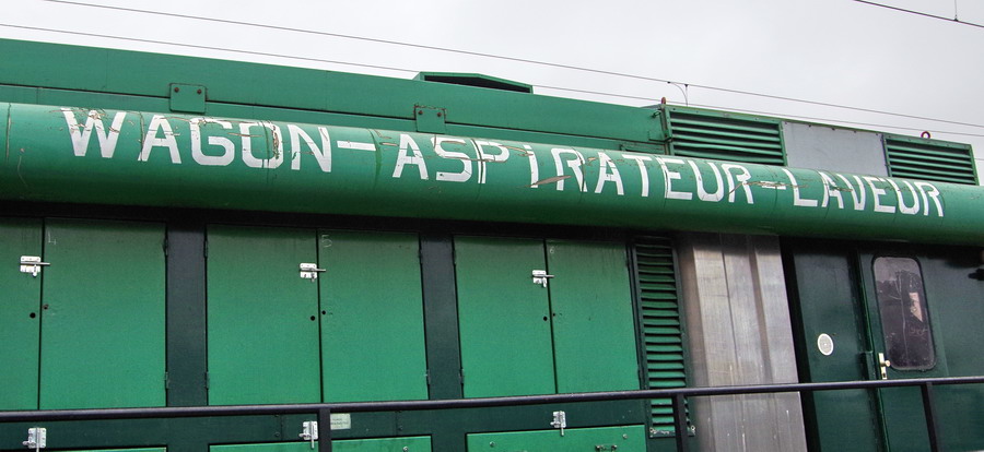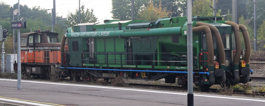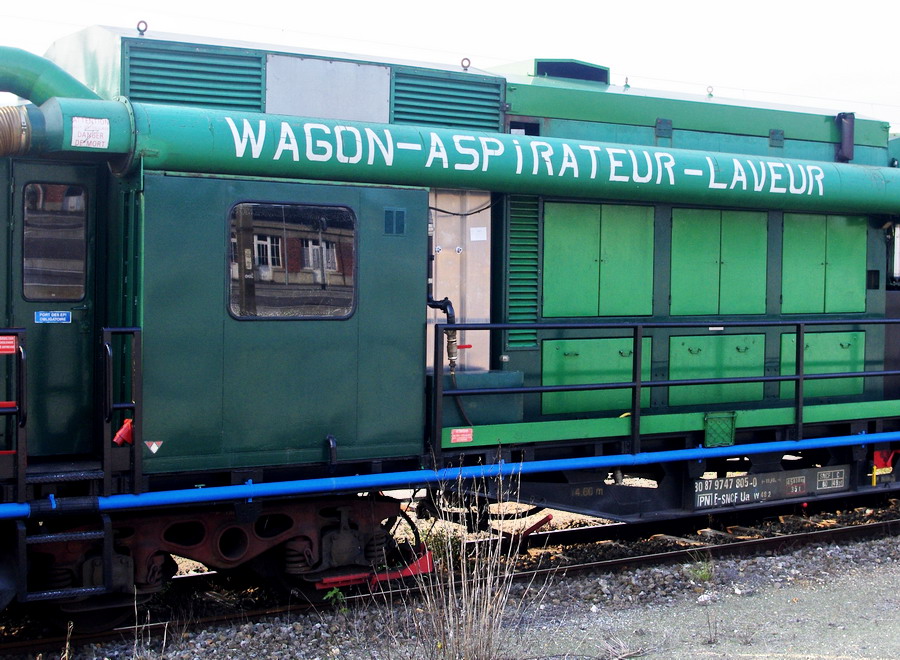 Quelques photos d'un wagon aspirateur en gare de BEAUVAIS. Il est tracté par un Y8OOO télécommandé. L'agent manoeuvre la rame depuis le quai avec un boitier de commande