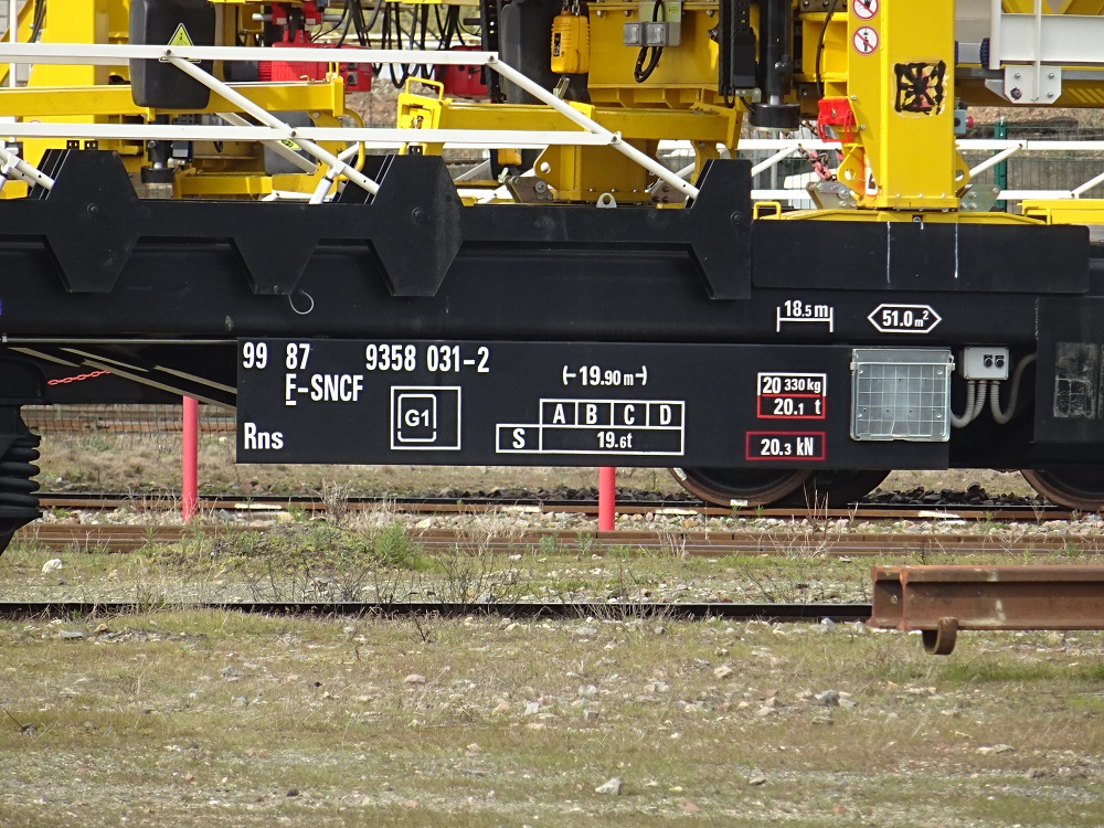 Le wagon support est classé Rns , celui ci 99 87 935 8 031-2 est vu à St Pierre des corps en mars 2023.