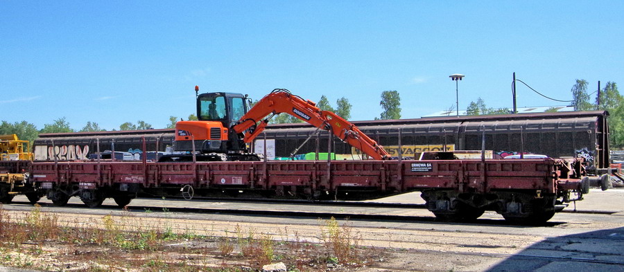 Le wagon 33 87 3945 062-9 Res RIV F-ERSA - ERMEWA avec une Pelle à chenille DOOSAN DX85R pour Transalp remouvellement