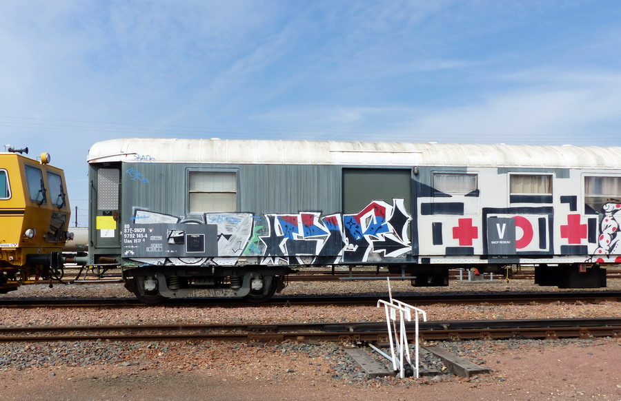 Voici la voiture de cantonnement 80 87 979 2 141-4 Uas H70 0 - SNCF-TR (ex PLM modernisée SE en B4Dd ou A4Dd)