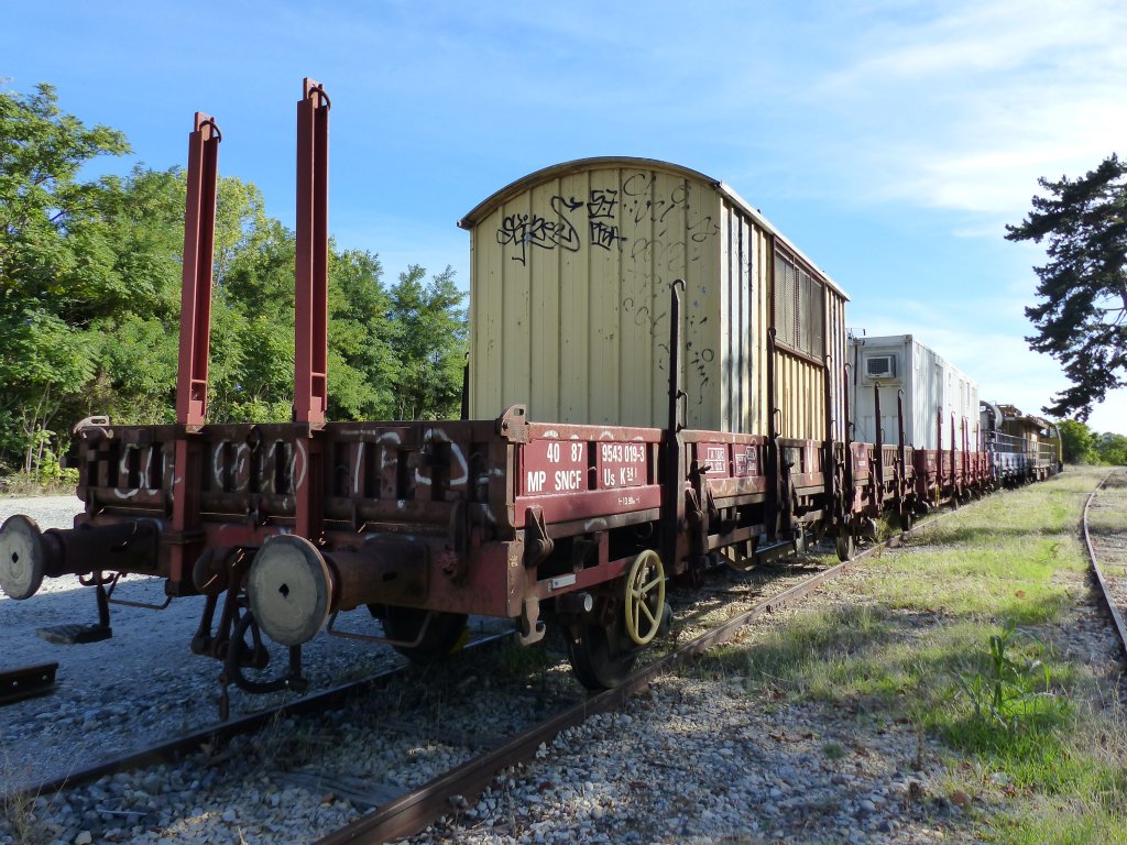 - wagon plat à ranchers avec conteneur amménagé 40 87 952 1 078-5 MP SNCF Us K 00 1