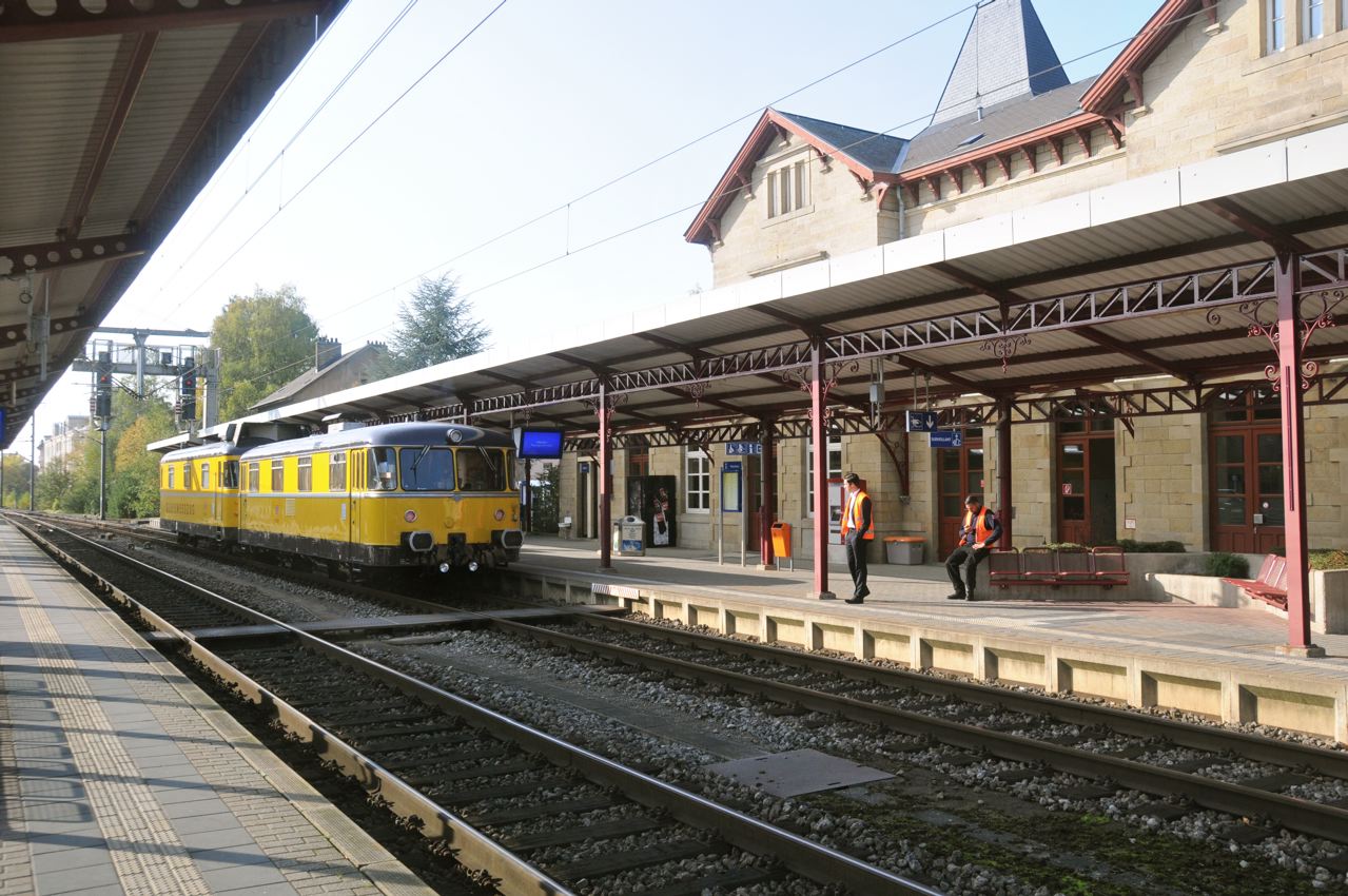Voici le GLEISMESSWAGEN  725 002-0  en gare de Pétange (Luxembourg).