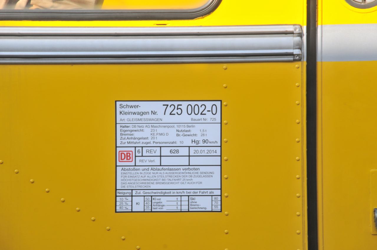 Voici le GLEISMESSWAGEN  725 002-0  en gare de Pétange (Luxembourg).