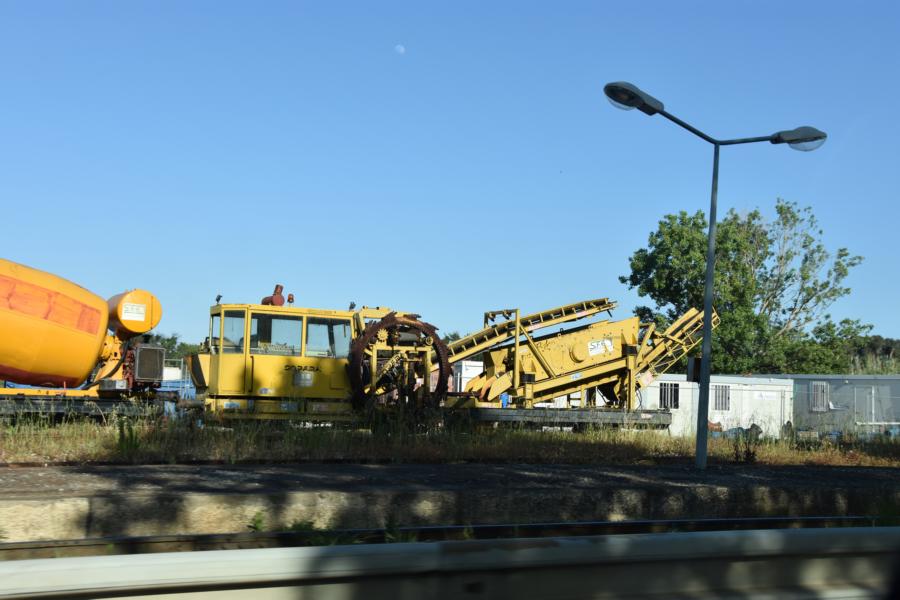 De retour de Corse, voici quelques photos toute fraiches prises en banlieue de Bastia! Il s'agit bien d'une dégarnisseuse. D'après ce que j'ai vu, elle traite uniquement les flancs (donc pas de chaine en dessous des traverses...). Agrandissements haute résolution disponibles, si souhaité! :drunk: (Là, je suis 100% satisfait de mon nouvel appareil Nikon: Mitraillage de la dég depuis la voiture à 70km/h sur la 2x2 de Poretta à Bastia, découverte surprise...et la qualité qui est au rdv!!)