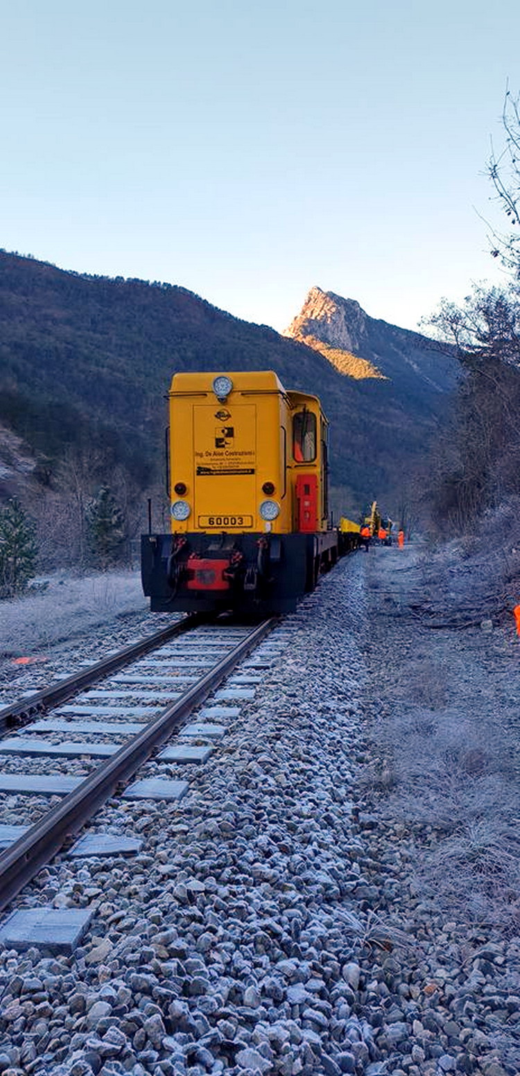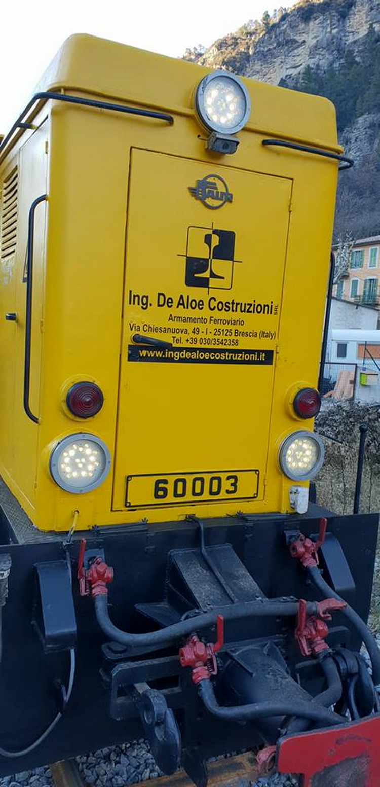avec la locomotive FAUR L45H n°24975 de 1985 d'origine Roumaine parc n°60003 de la société de TTx Italienne Ing De Aloe Costruzioni à Brescia (I)