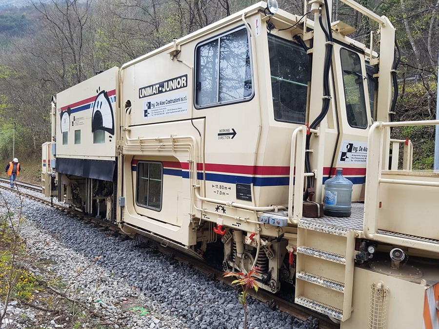 Voici une Bourreuse de Plasser & Theurer UNIMAT-JUNIOR n°2822 de 1995 en écartement métrique de la société de TTx Italienne