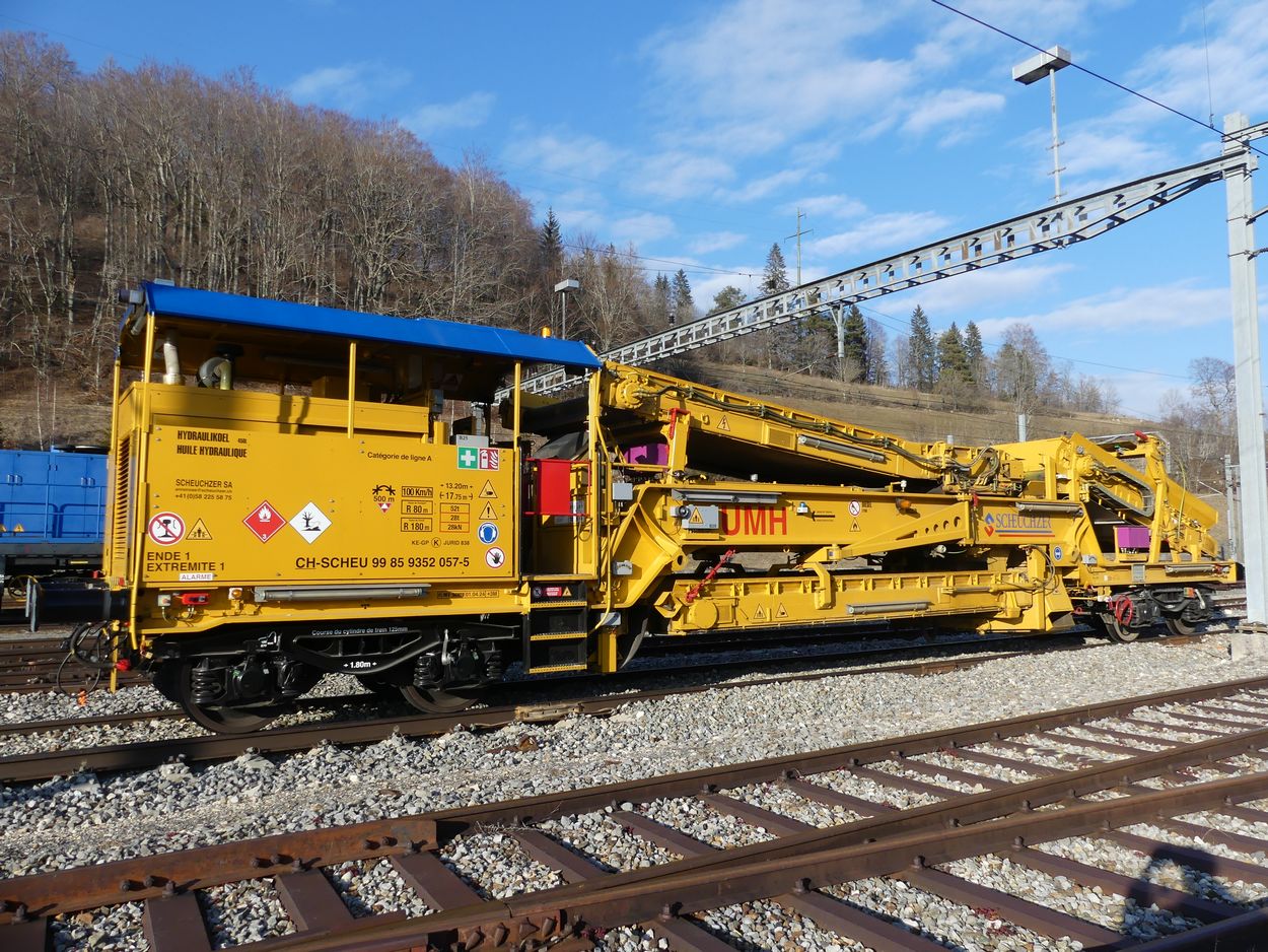 Scheuchzer Possède un wagon Plasser&Theurer type UMH pour vider les VAD. le voici à Vallorbe dimanche.