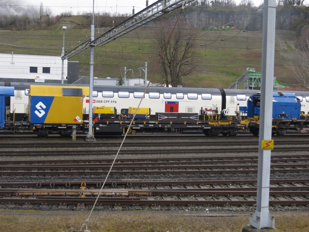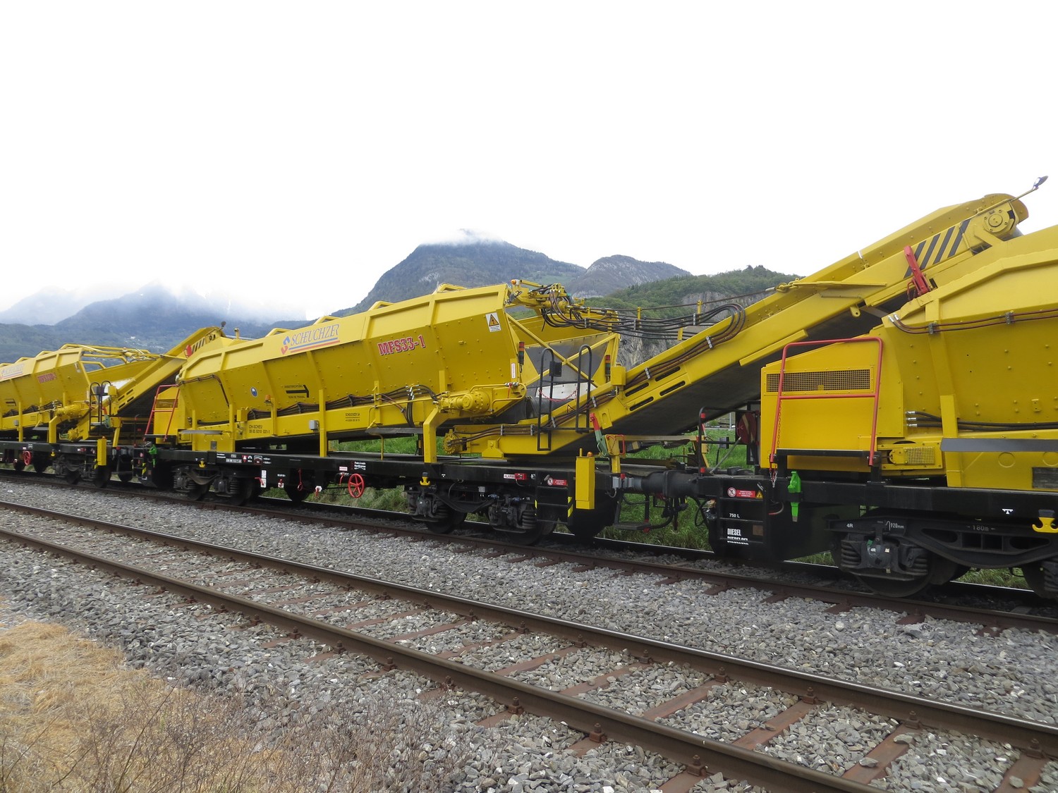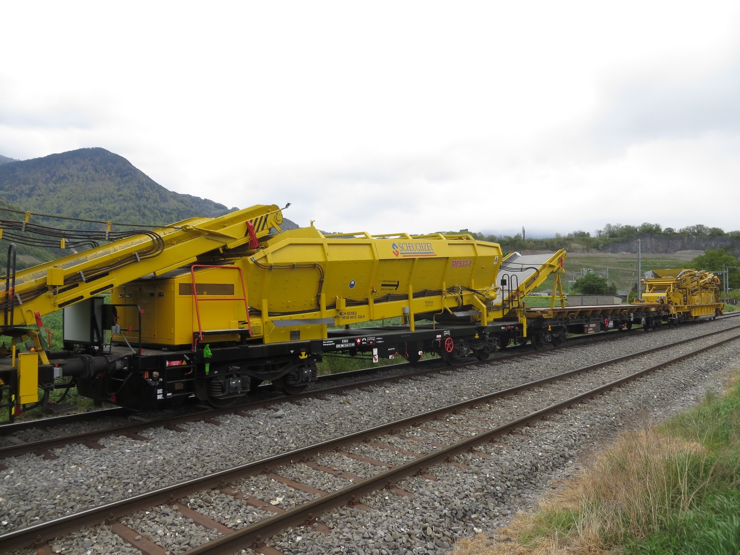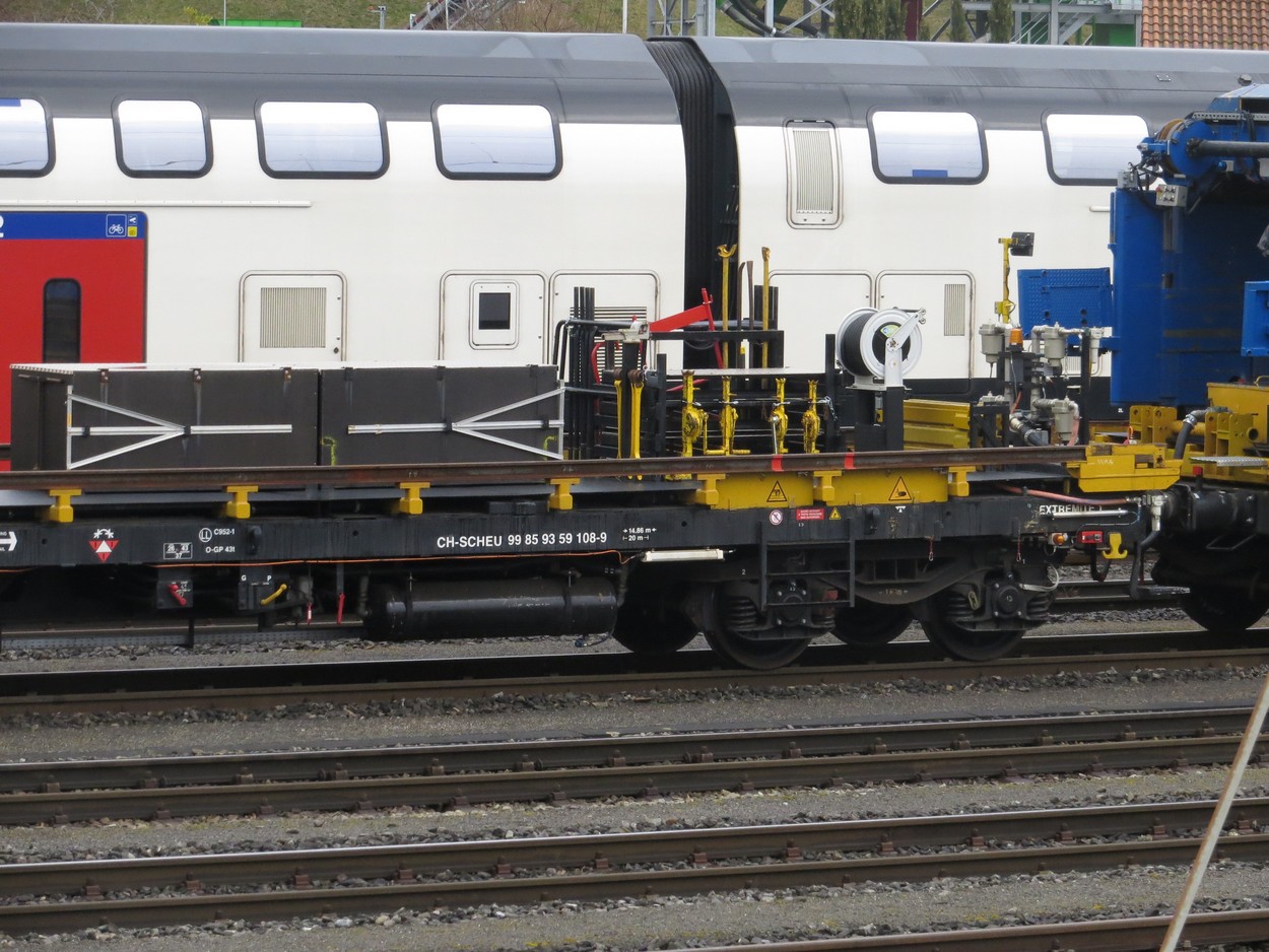 c'est un wagon utilisé jusqu'ici pour le transport des traverses du tunnel de base du Gothard que Scheuchzer à modifier pour le transport de portique.