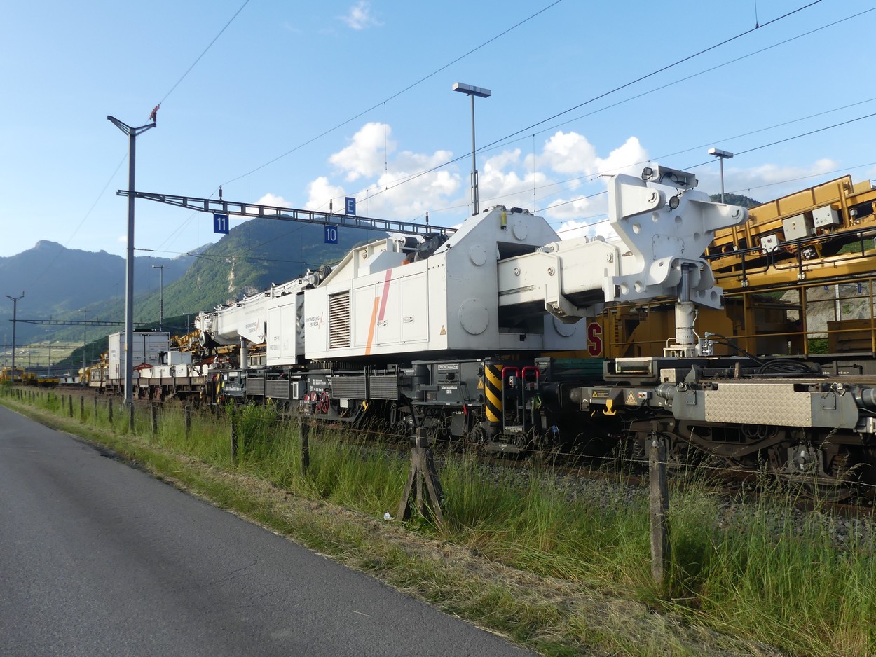 La grue Kirow KRC 1200-1 de Rhomberg Sersa Rail Group était à St.Triphon la semaine dernière. Photos le 26.05.2024.