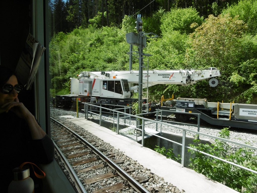 je vous laisse mettre les informations sur cette grue capturée au vol sur les chemins de fer rhétiques sur la ligne de Coire (Chur) à Arosa le 10 mai 2024.