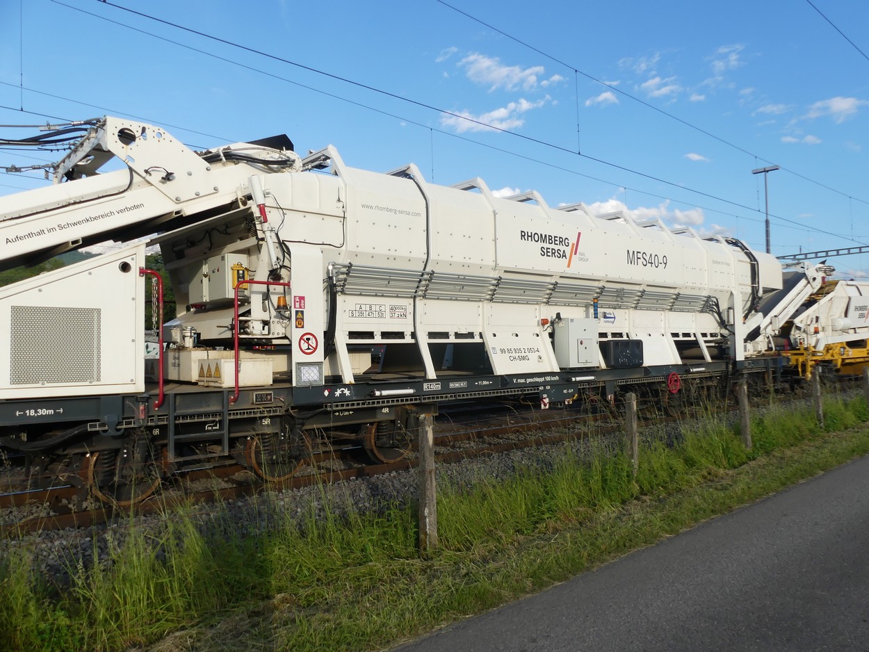 Voici un MFS 40-9 à six essieux de Plasser&Theurer à Rombherg Sersa Rail Group