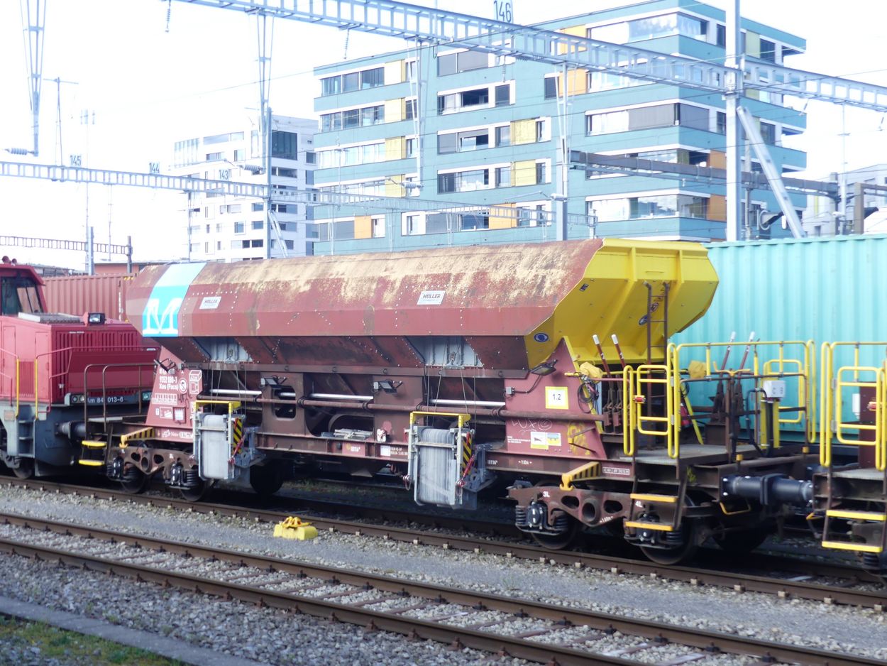 Voici un wagon particulier. Il s'agit d'un wagon de ballast de type Facs modifié. Il embarque des bandes transporteuses commandée par câble et télécommandées permettant de décharger sur le coté de la voie. pratique pour les chantiers de drainage.
