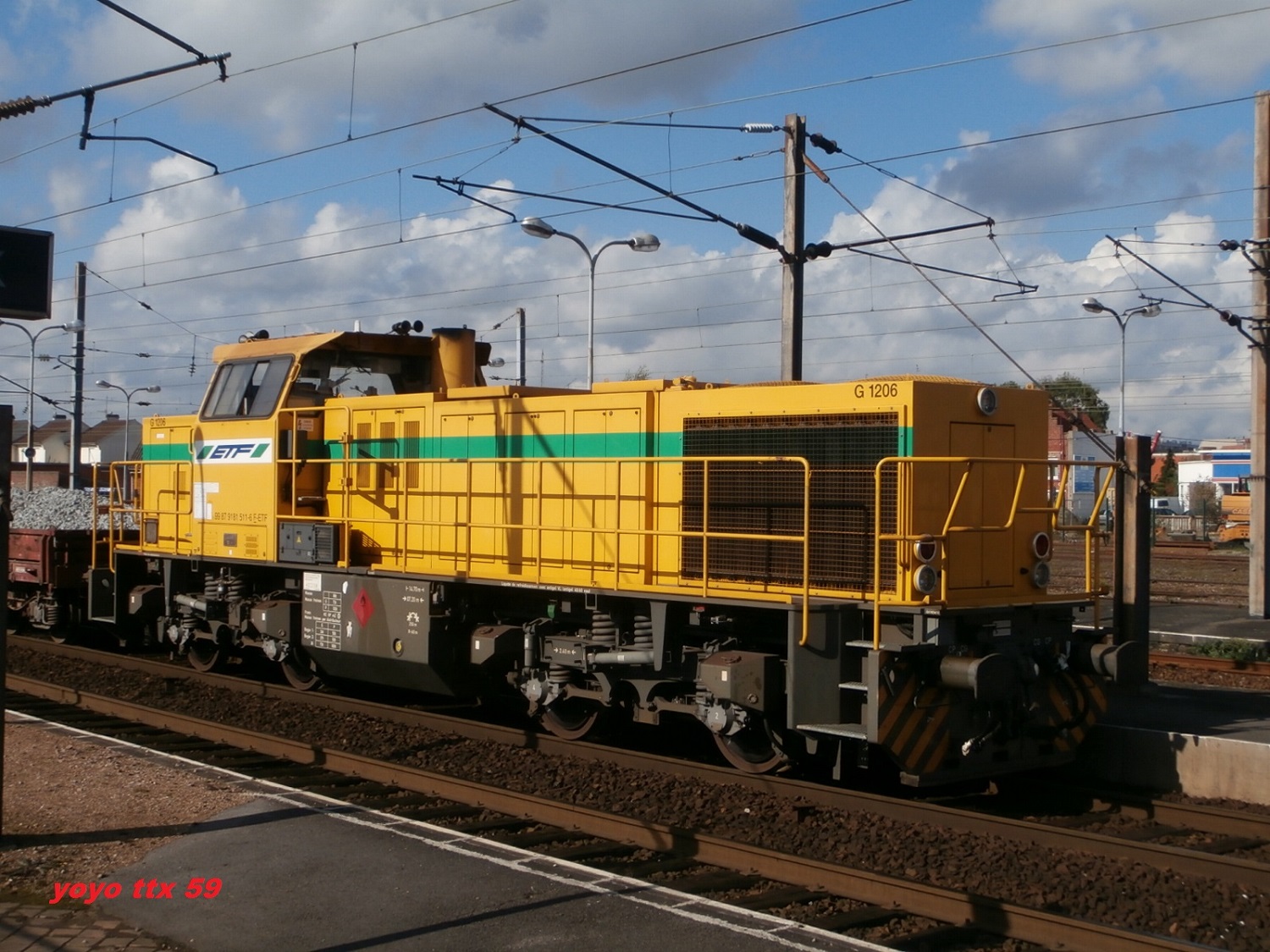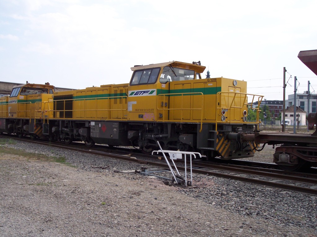 Voici une G 1206 ETF prise sur le triage d'Hourcade. Par contre comme la photo est floue je n'arrive pas à voir le numéro. Quand je compare aux autres photos du site, il y a quelques différences. Portes drapeaux gris, numéro UIC sur la cabine ...