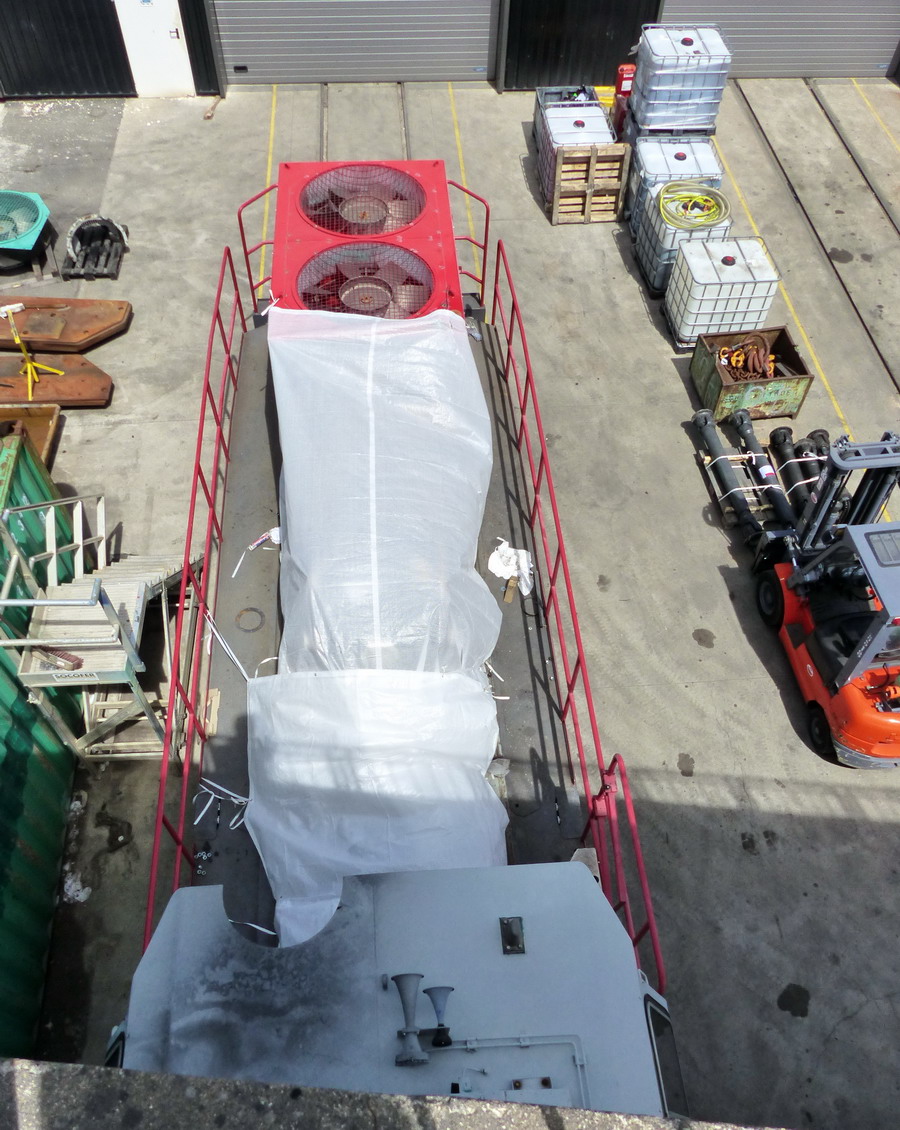 ils sont retirées les capots moteur et elle est bâchée