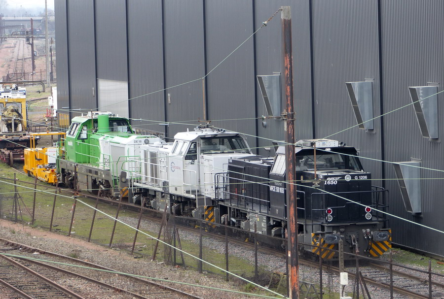 avec deux autres machine une G 1000 d'ECR el la DE 18 5001929 Prototype n°2 de 2011 pour Vossloh Locomotives EVN n° 92 80 4185 002-7 D-VL