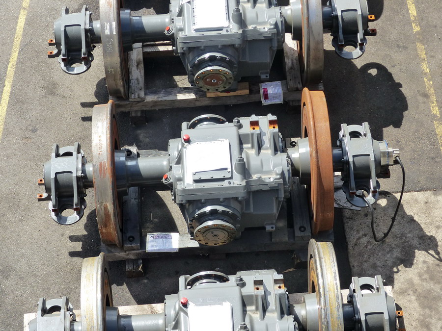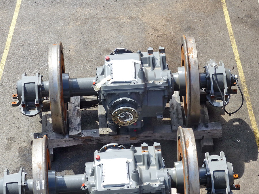 moteur et les essieux neuf pour changement sur les bogies par la suite à l'extérieur de l'atelie
