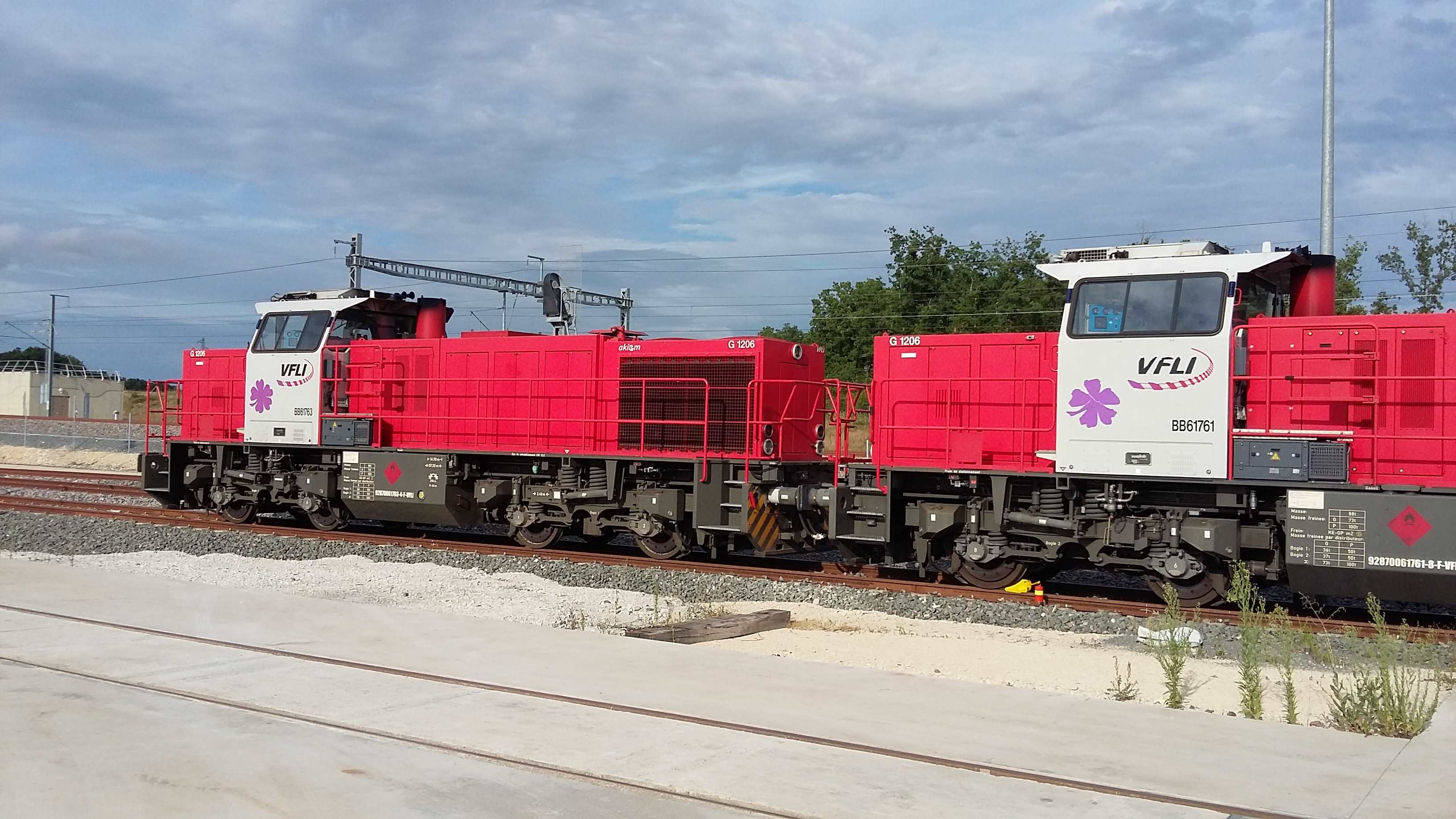 Voici des photos prises lundi sur la base de maintenance de Villognon (16) de la G1206 VFLI 92 87 0061 763-4 en UM avec une autre G1206 VFLI (92 87 0061 761-8).